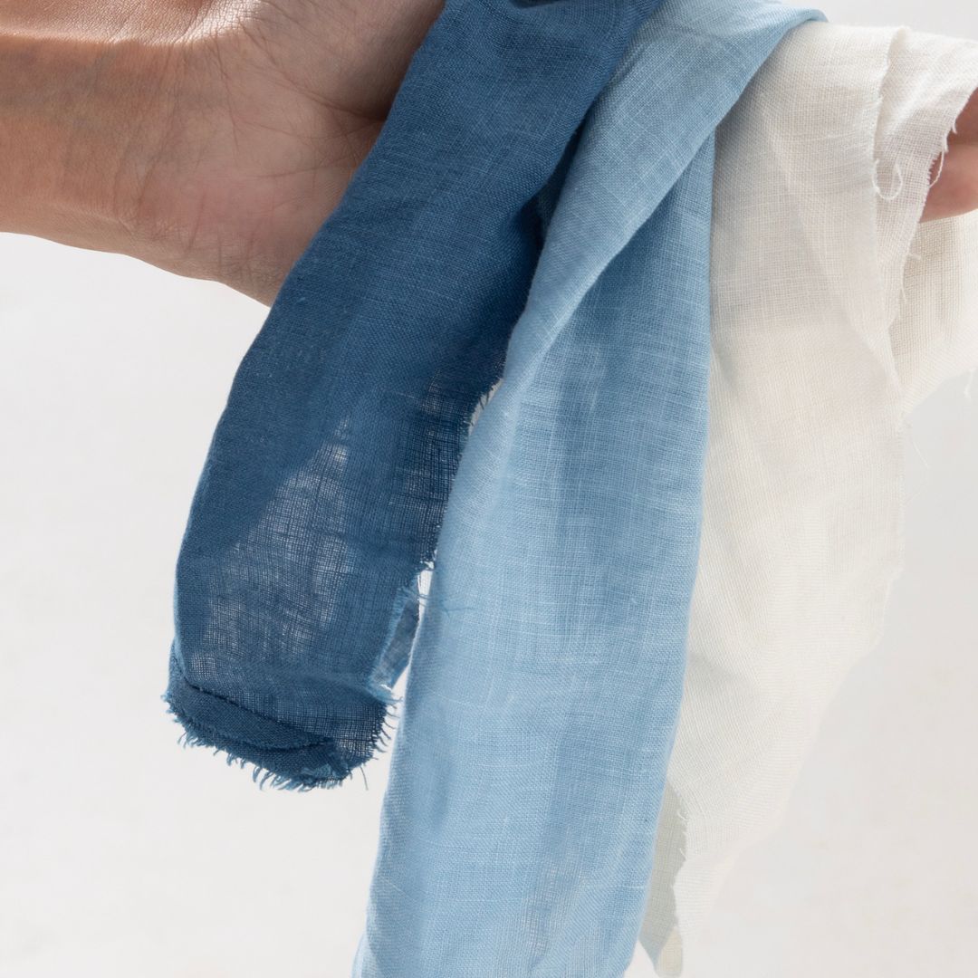 Criamos a partir de fibras naturais como linho, algodão certificado e malha de algodão orgânico que não tenham passado pelo processo industrial convencional de tingimento.
