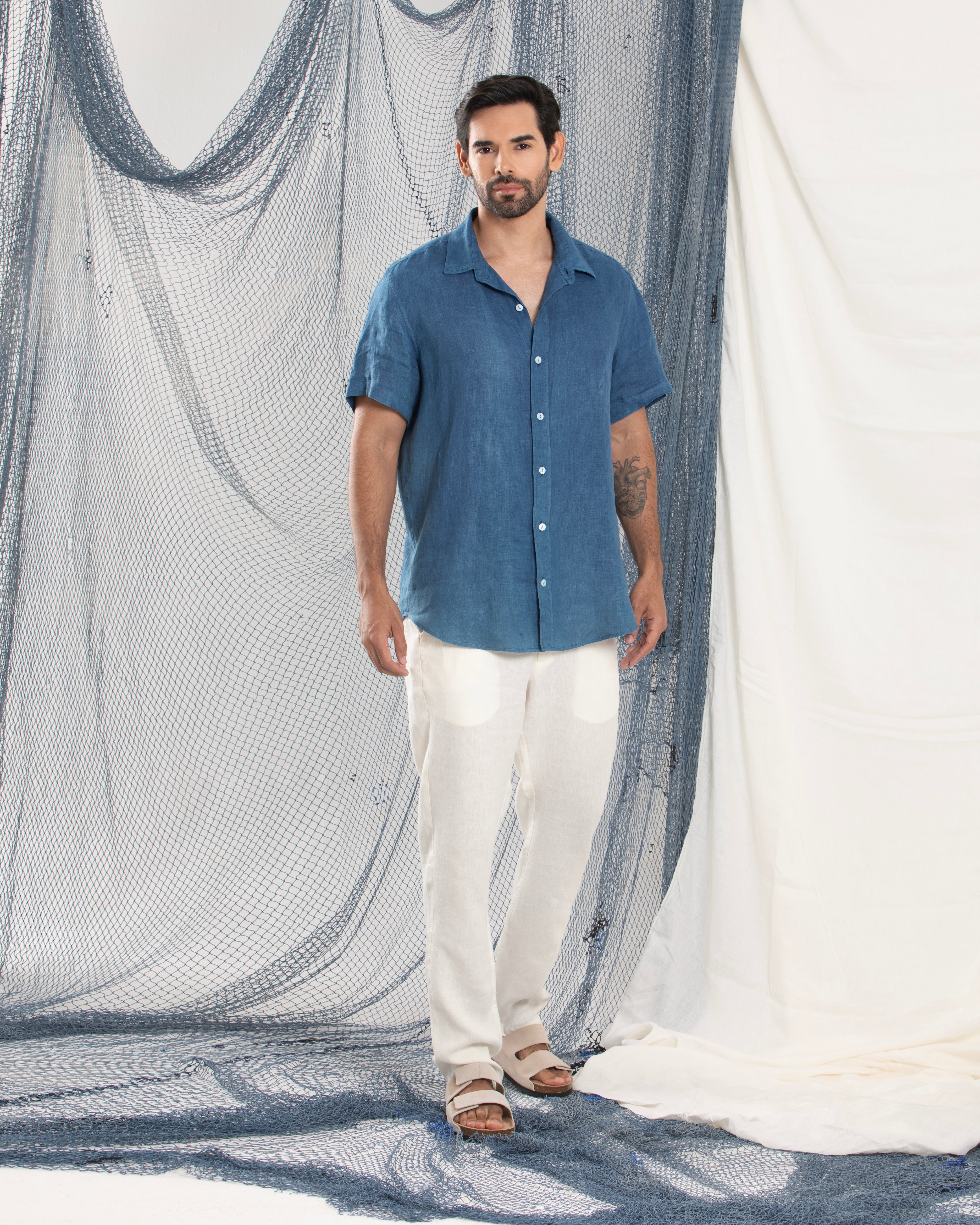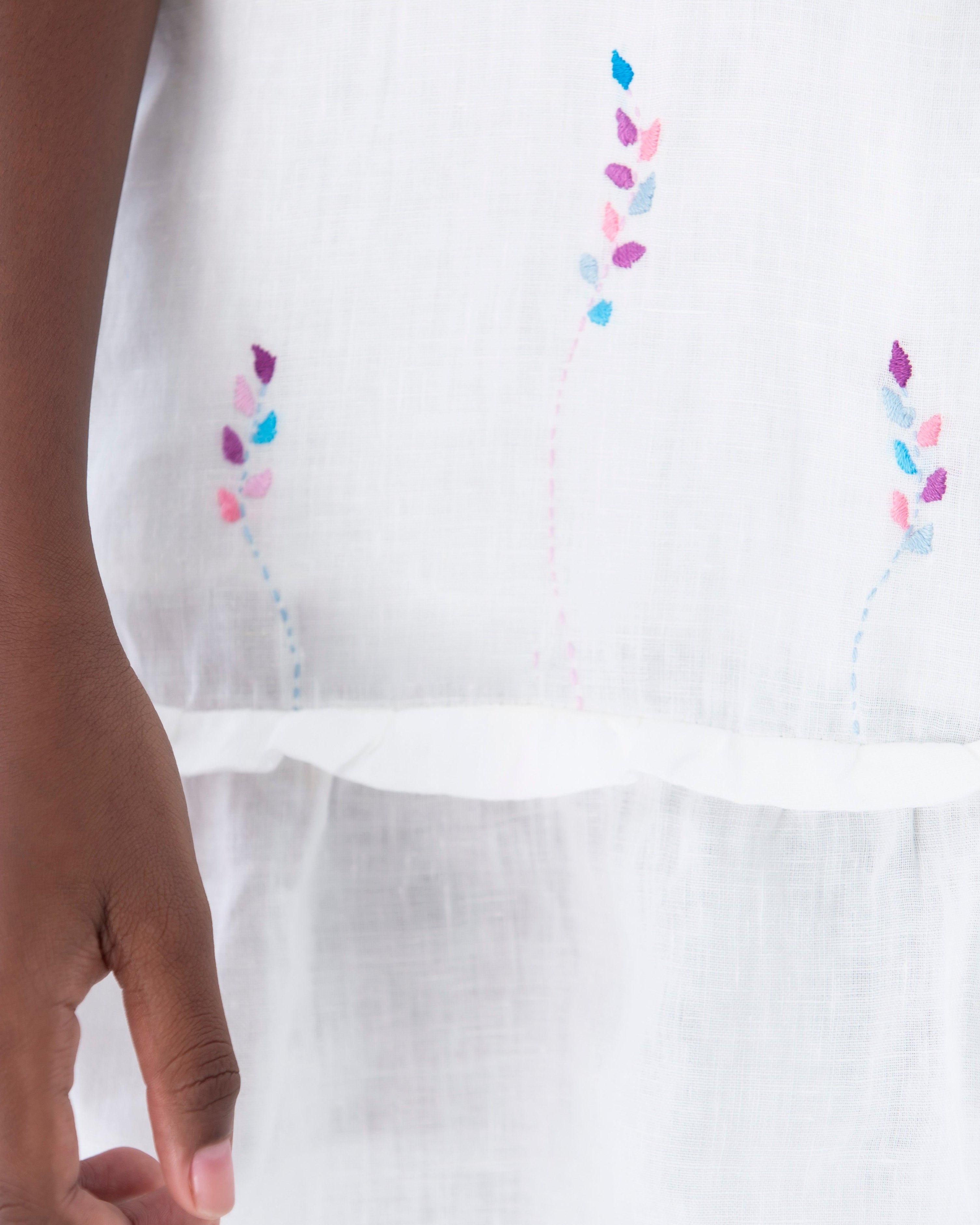 Feita em linho 100%, algodão certificado e tinturaria natural, é obra onde a arte se traduz em cores vivas