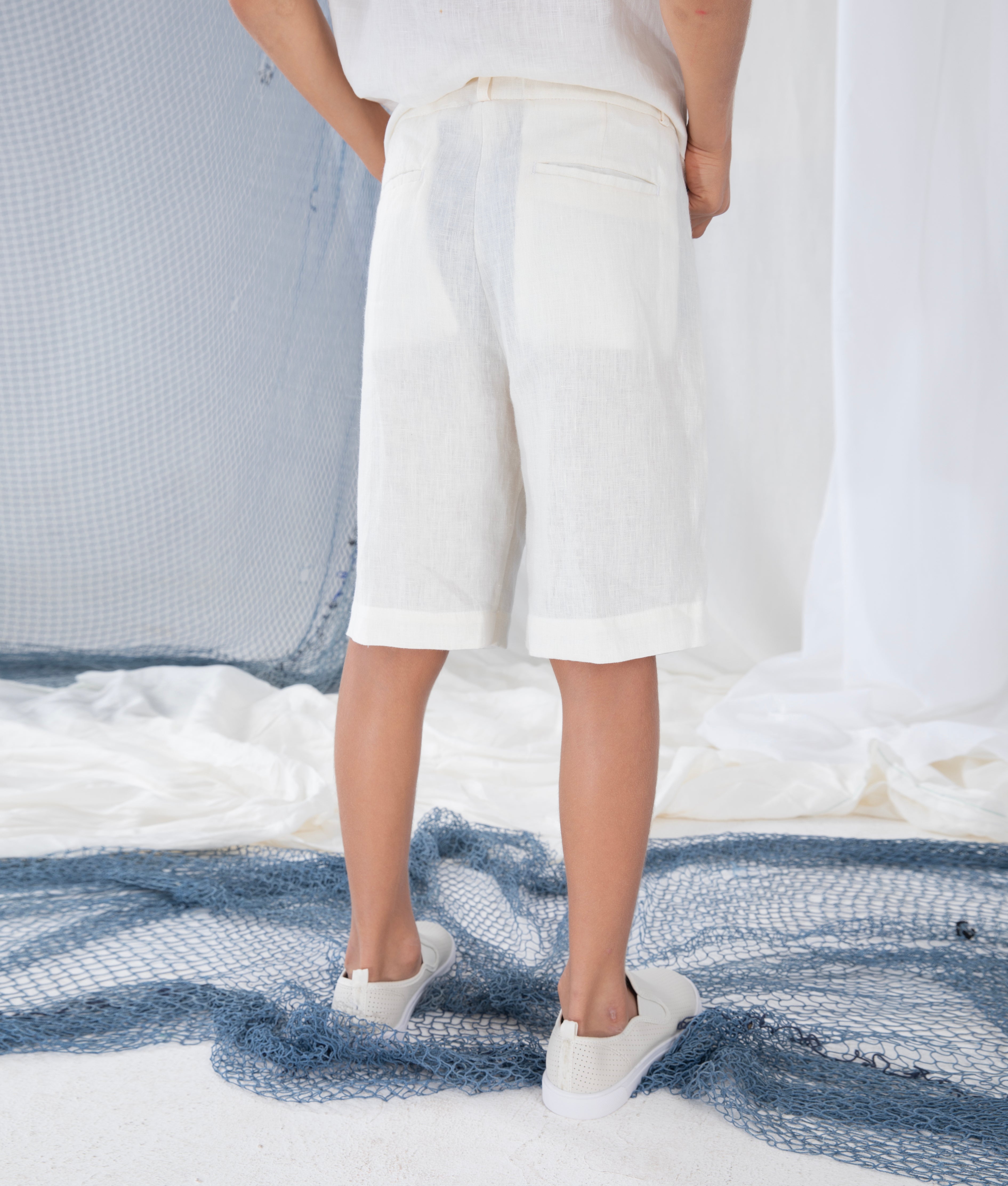 A Bermuda MARINO é a escolha ideal para dias quentes, oferecendo o conforto e a leveza que as crianças precisam. Feita em linho puro, ela proporciona um toque suave e arejado, perfeito para o clima tropical. O design simples, com um corte reto e elegante, permite liberdade de movimento, enquanto o tom de azul natural evoca as águas profundas do oceano.