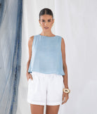 Com cintura mais ampla que o busto, a Blusa APRECIAR é feita em cambraia de linho puro e tem gosto de liberdade.