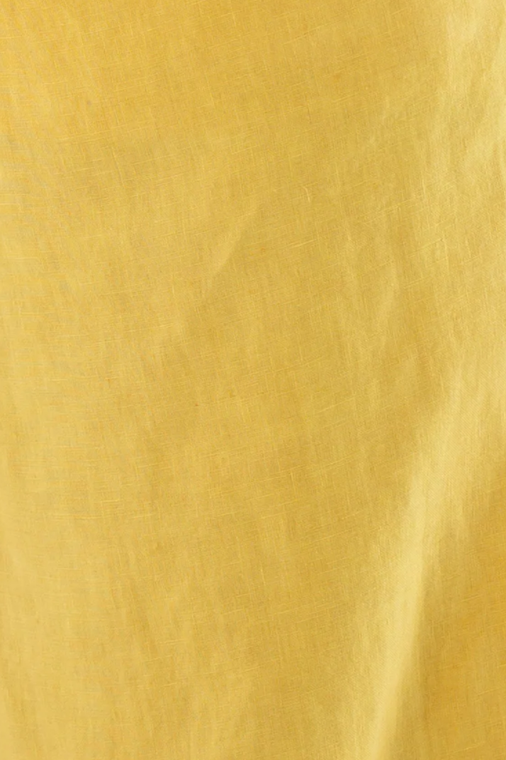 Seu colorido é feito de plantas. Seus tons de amarelo são extraídos da casca de cebola e seus tons de rosa vêm do crajiru. É em nosso ateliê que, a partir do processo de tingimento, fixamos esse colorido das plantas na planta do linho que compõe o tecido.