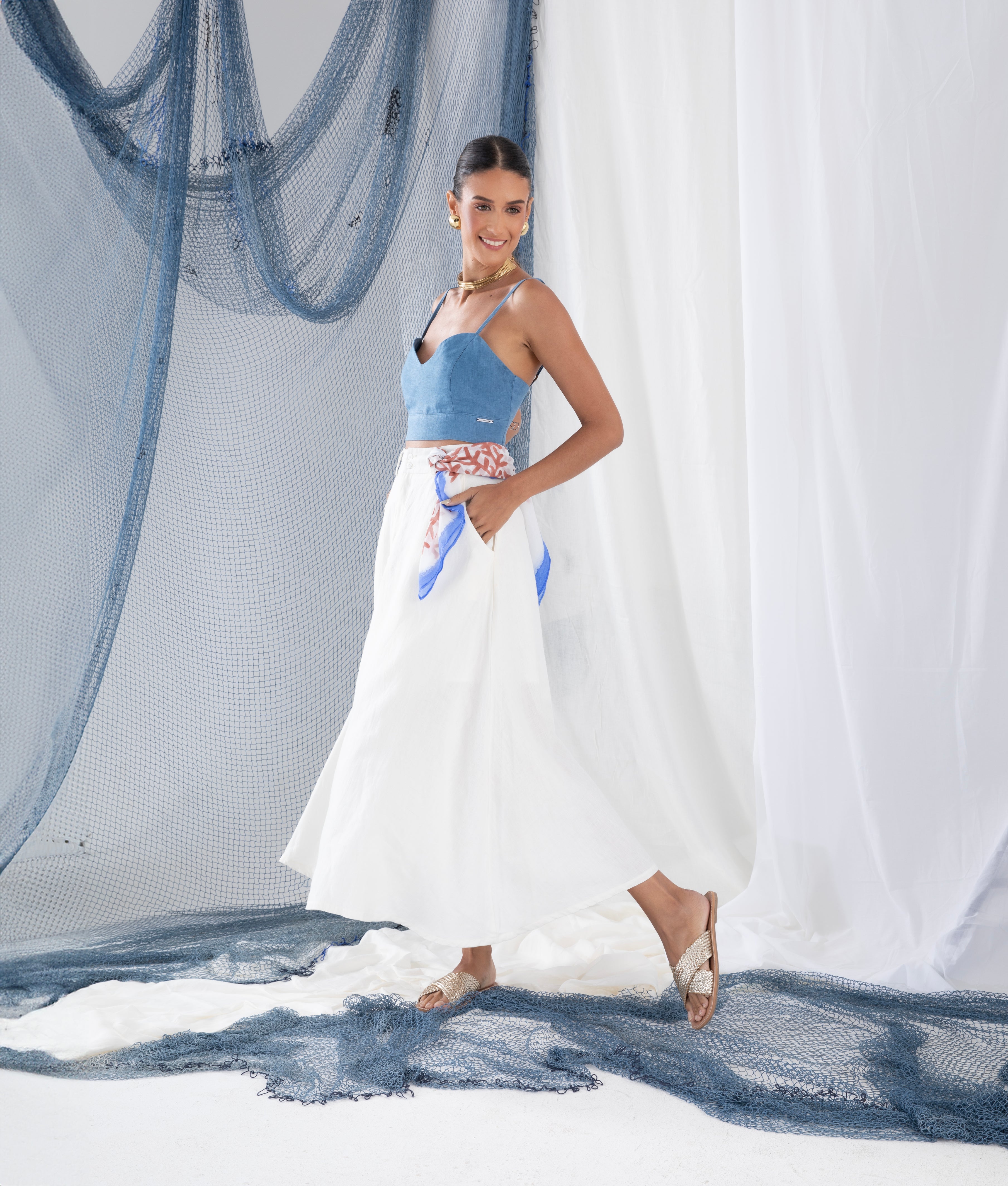 Perfeito para composições que transitam entre o casual e o sofisticado, o Top ONDAS é uma celebração do minimalismo consciente e do poder transformador do mar e do amar.