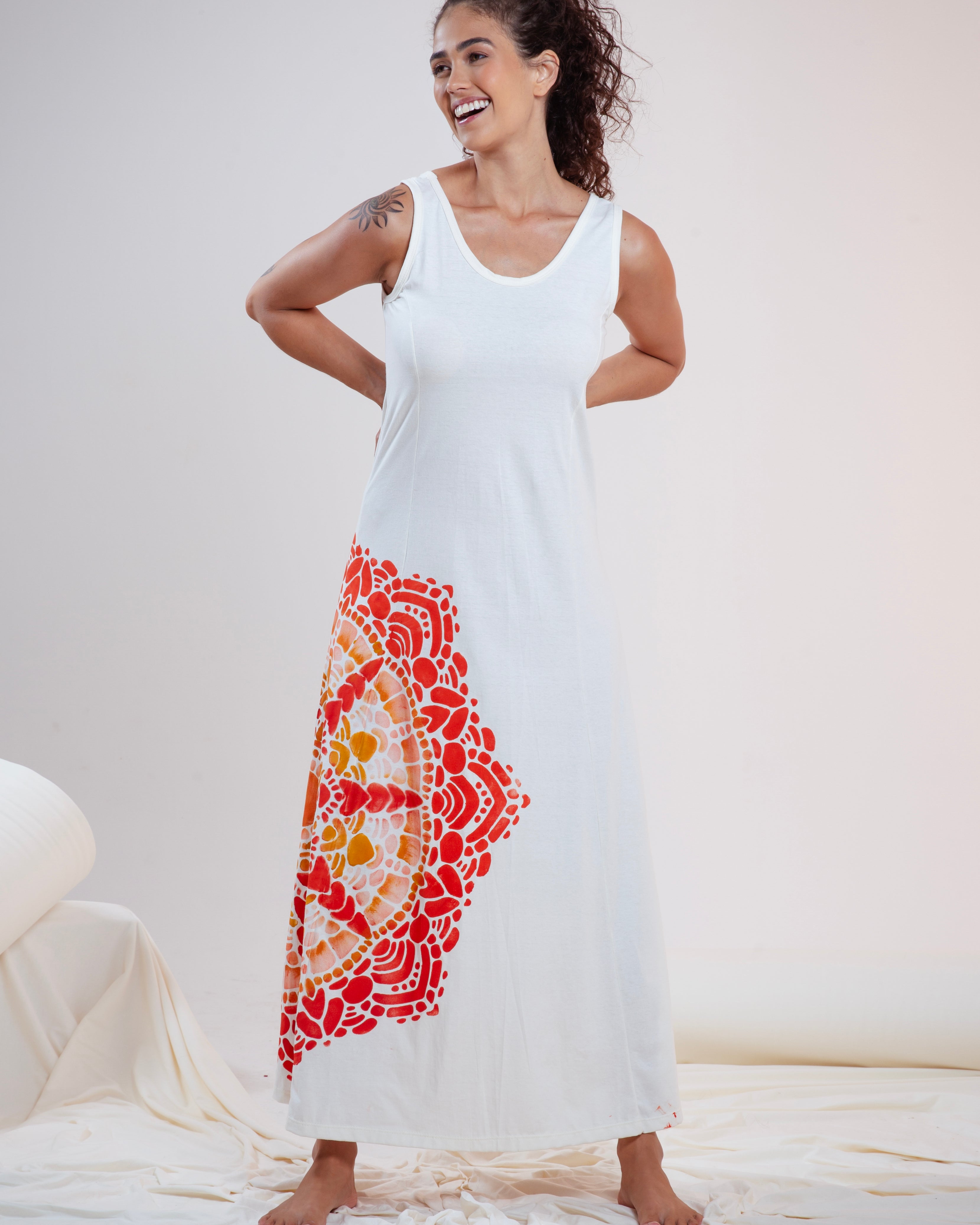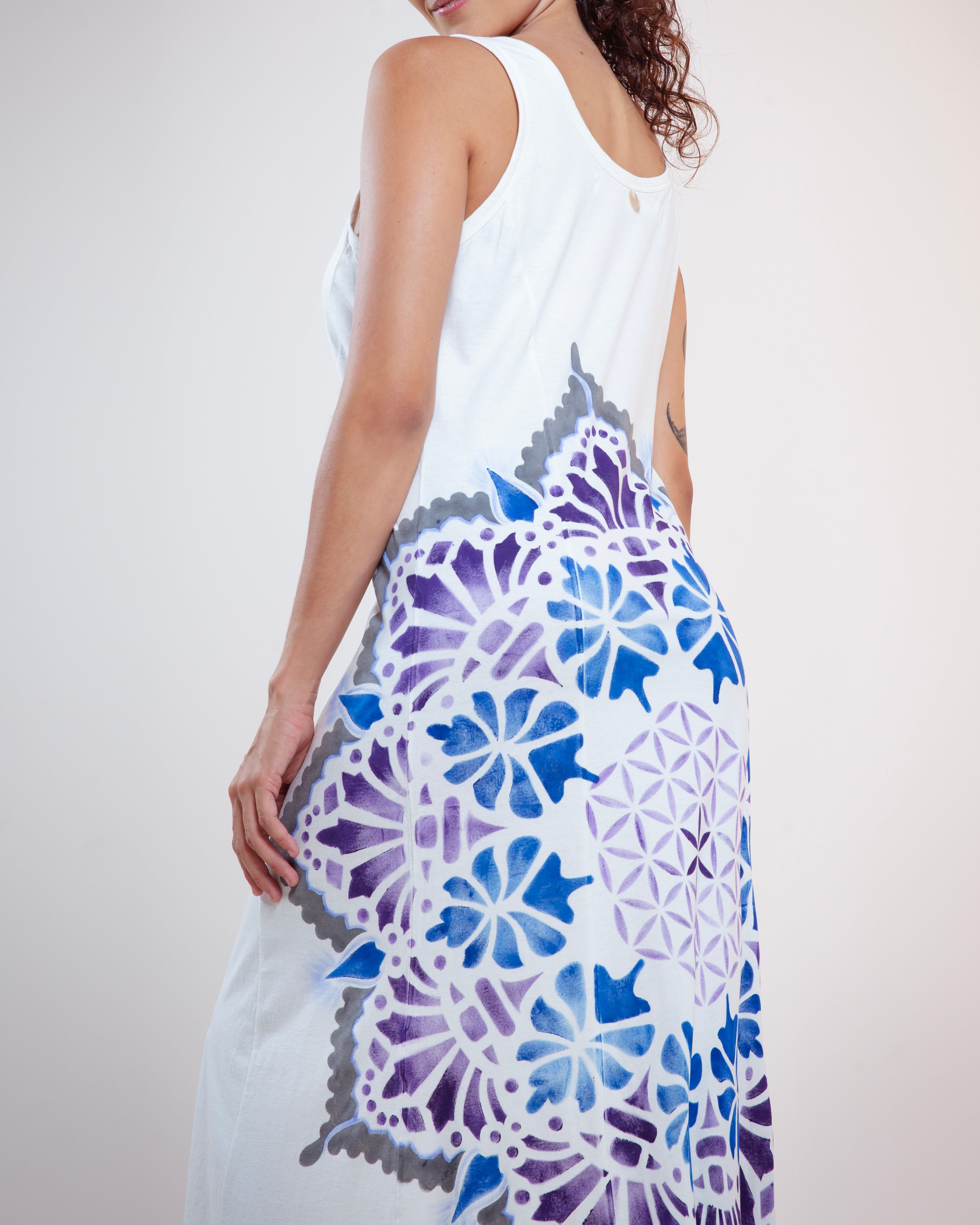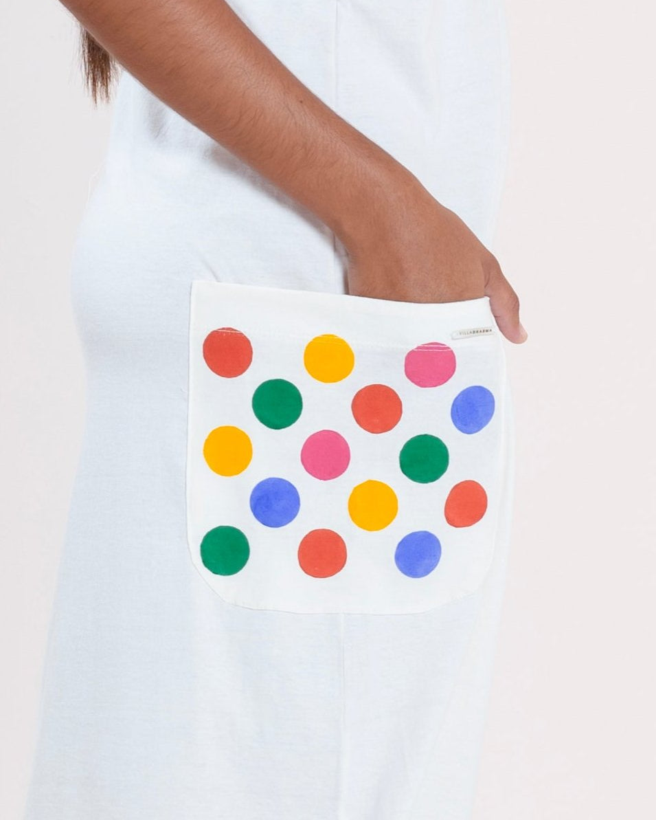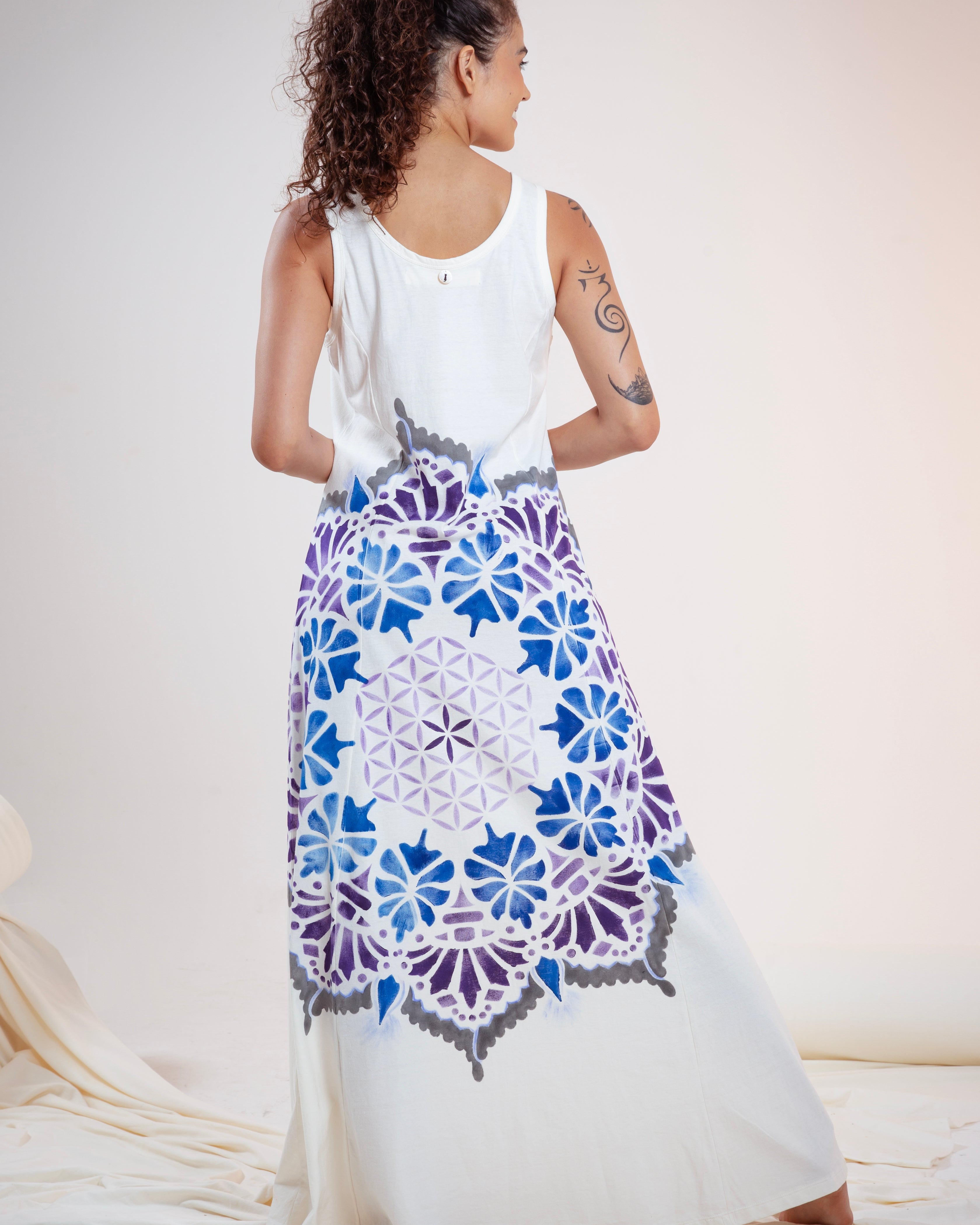Pachamama, Mãe Terra nutridora, viva, sagrada, potente, é a força inspiradora da nossa nova Coleção, toda feita em malha de algodão orgânico e pintada a mão por Mulheres Artistas incríveis.