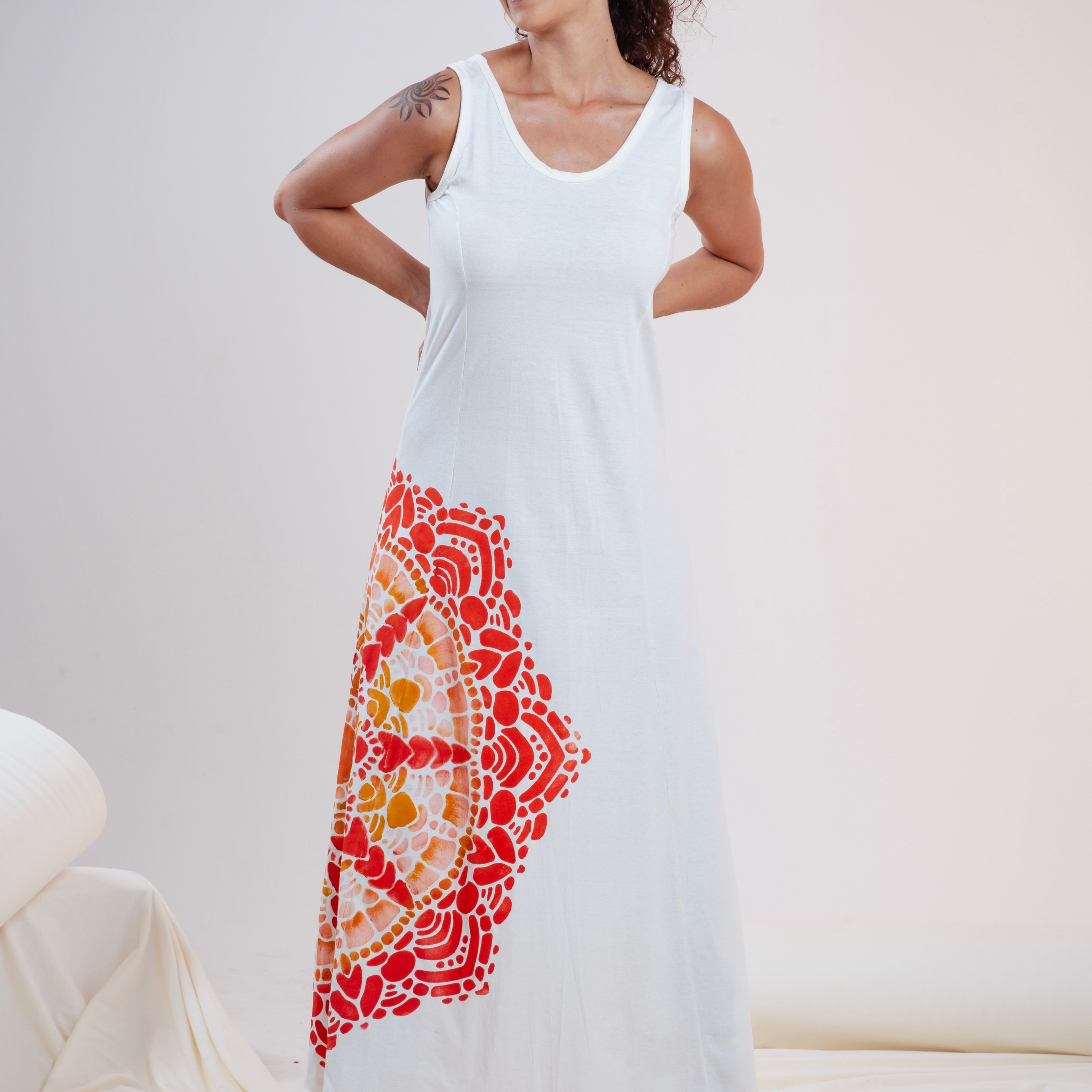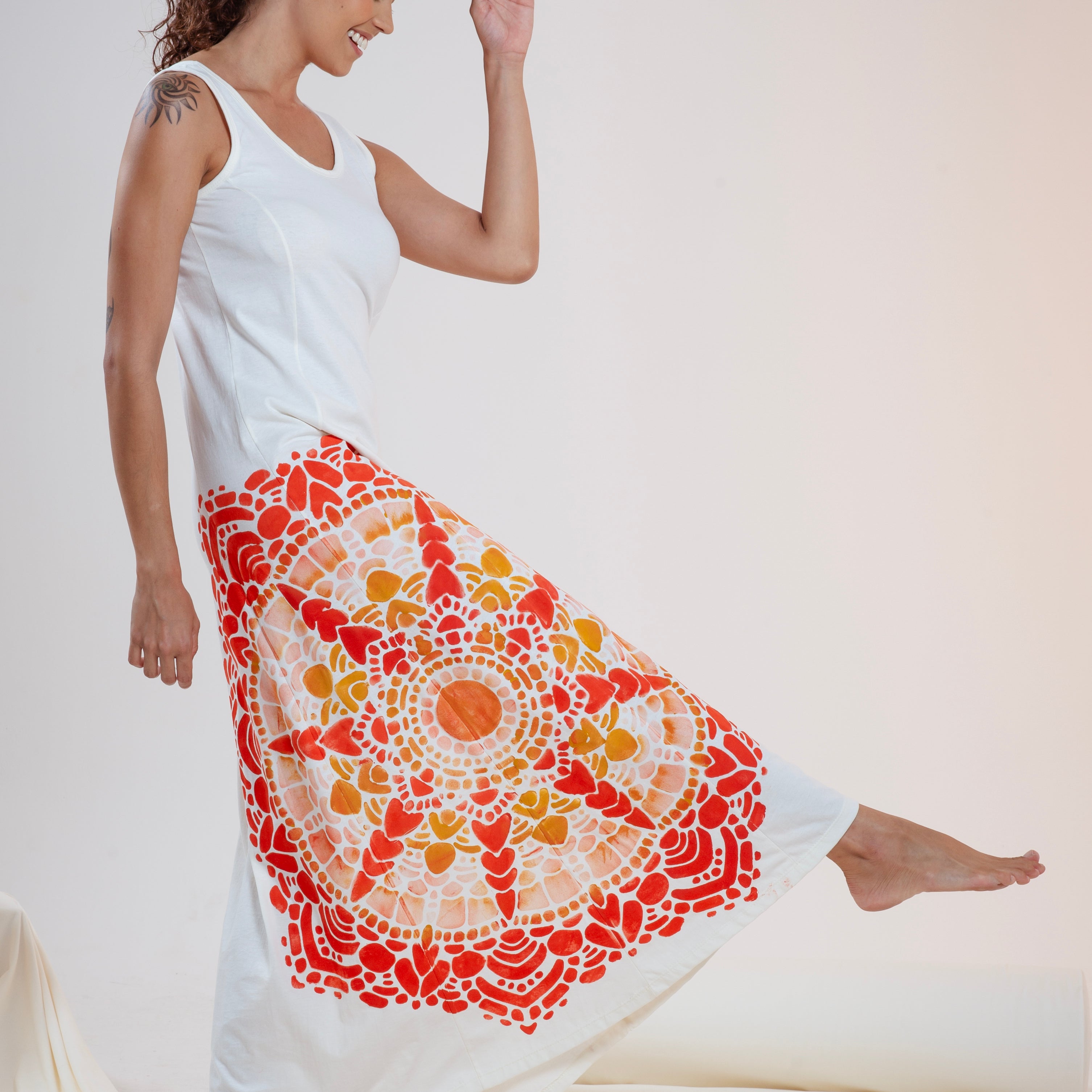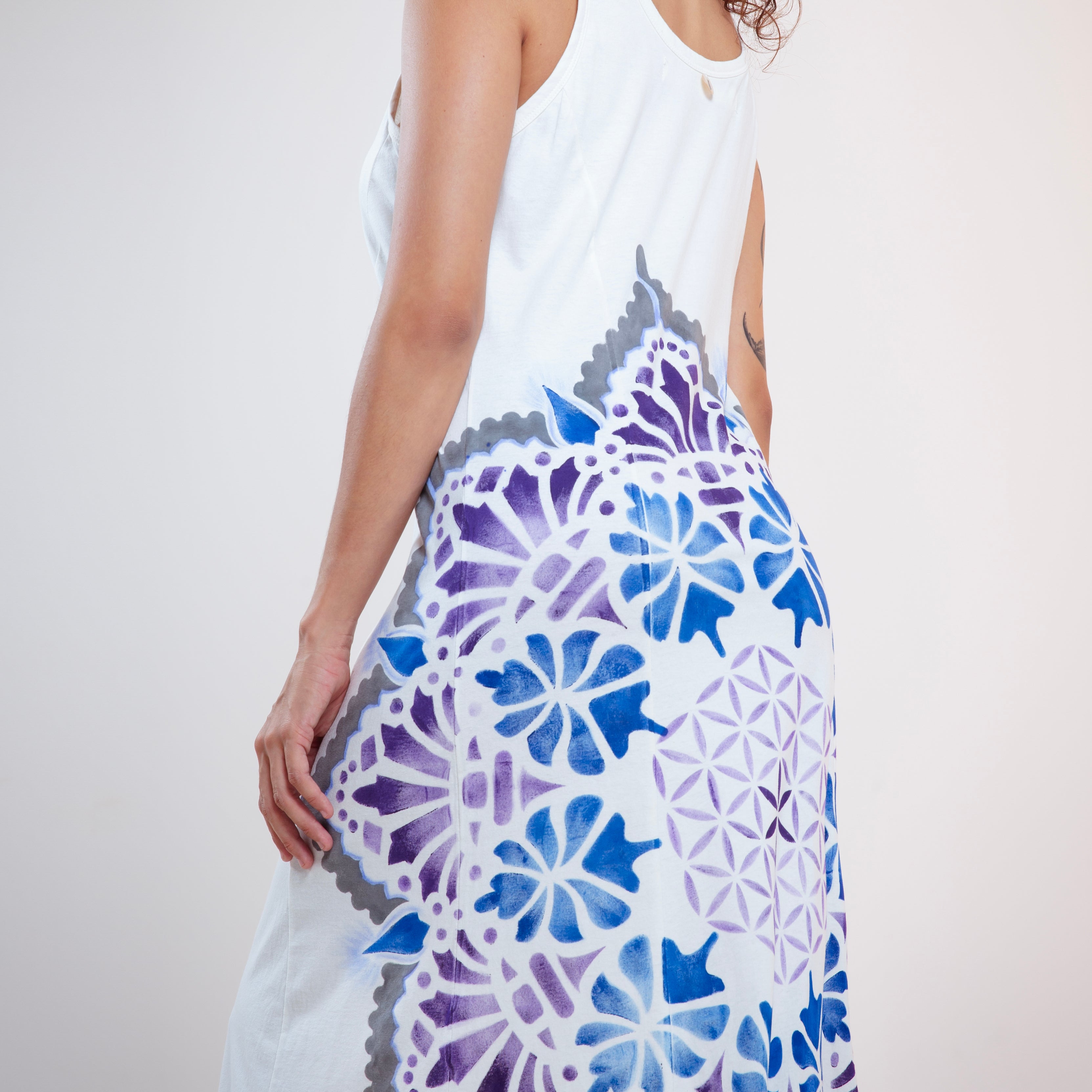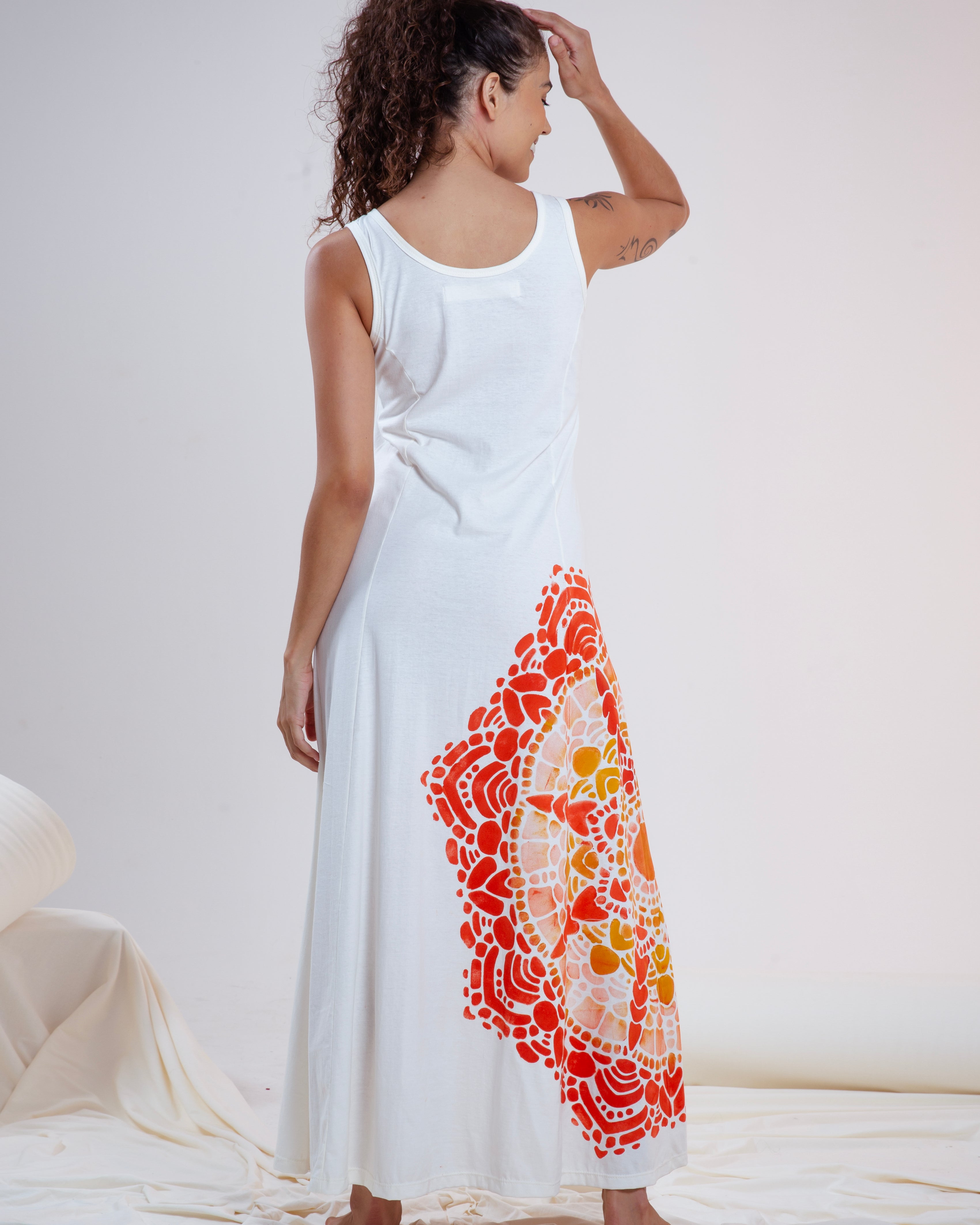 Pachamama, Mãe Terra nutridora, viva, sagrada, potente, é a força inspiradora da nossa nova Coleção, toda feita em malha de algodão orgânico e pintada a mão por Mulheres Artistas incríveis.