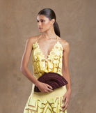 Bolsa modelo leque feita em palha de carnaúba tingida em tom marrom natural. Atemporal, leve e versátil, é um acessório que resgata a tradição trançada da palha nordestina em linhas contemporâneas.