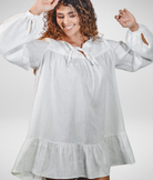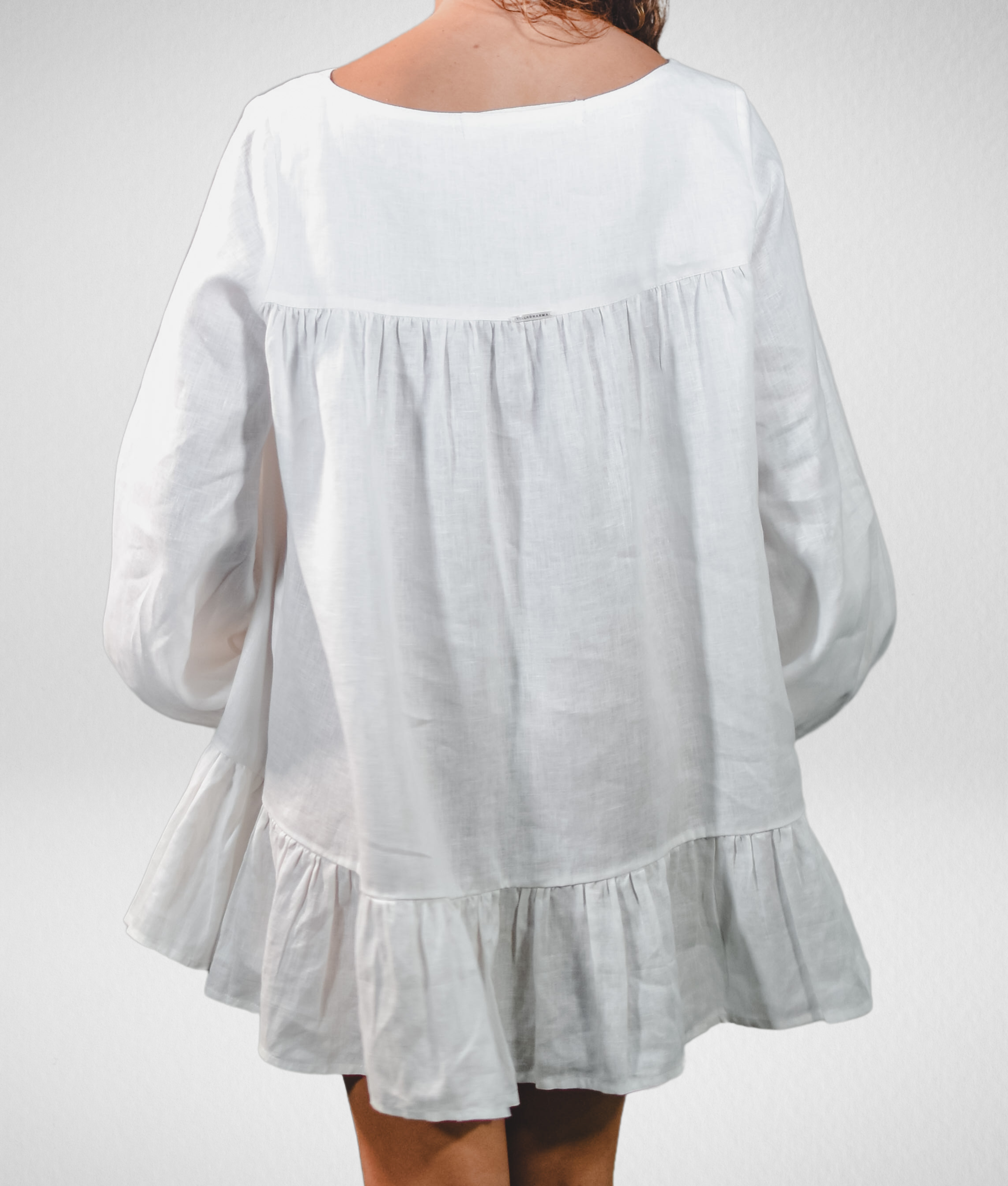 Com espírito leve e feminino, nosso Vestido Bata em Linho Puro celebra a delicadeza no conjunto da obra. Suas mangas amplas ganham expressão a partir dos franzidos nos ombros e punhos, trazendo fluidez e autenticidade ao look.