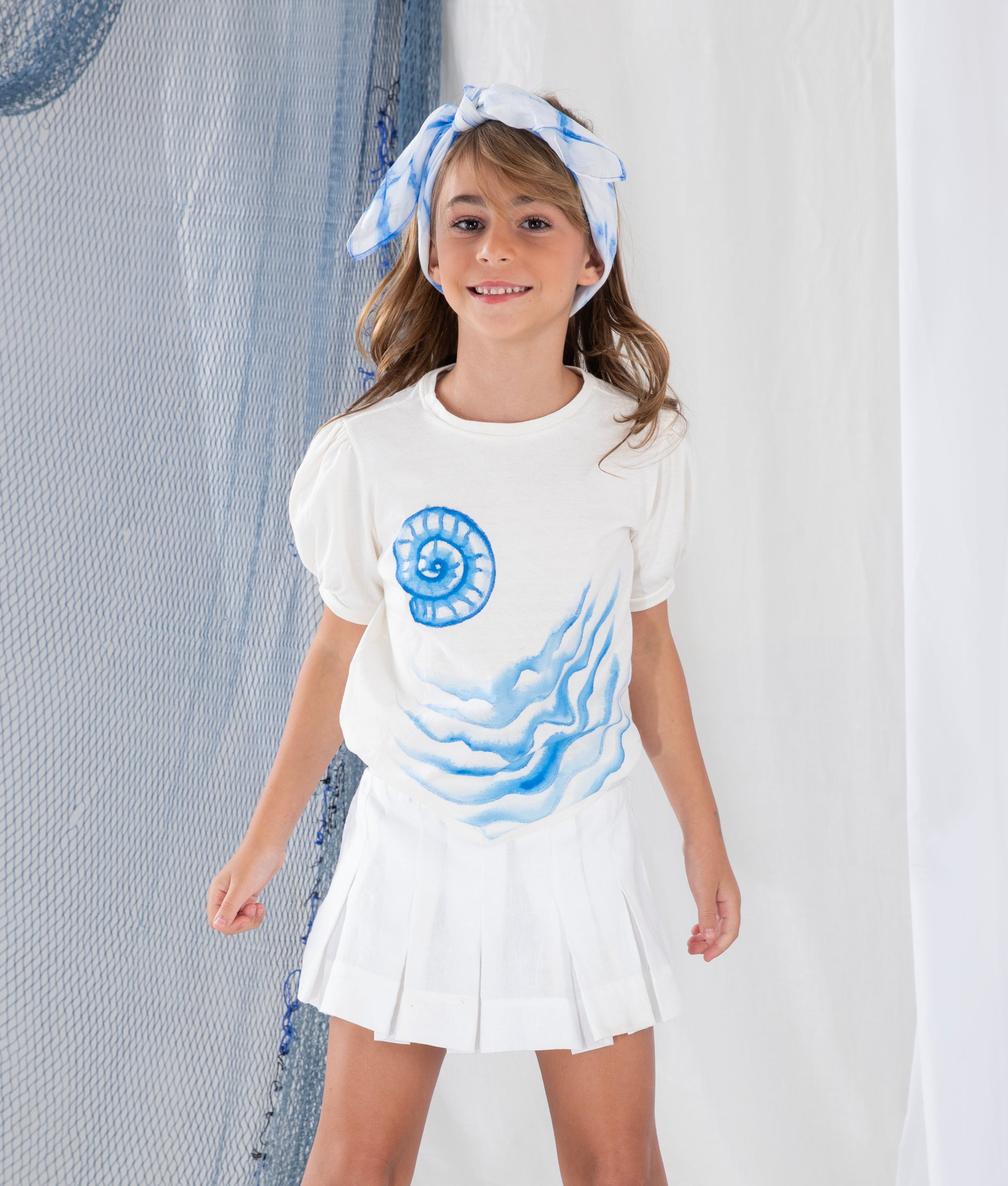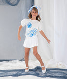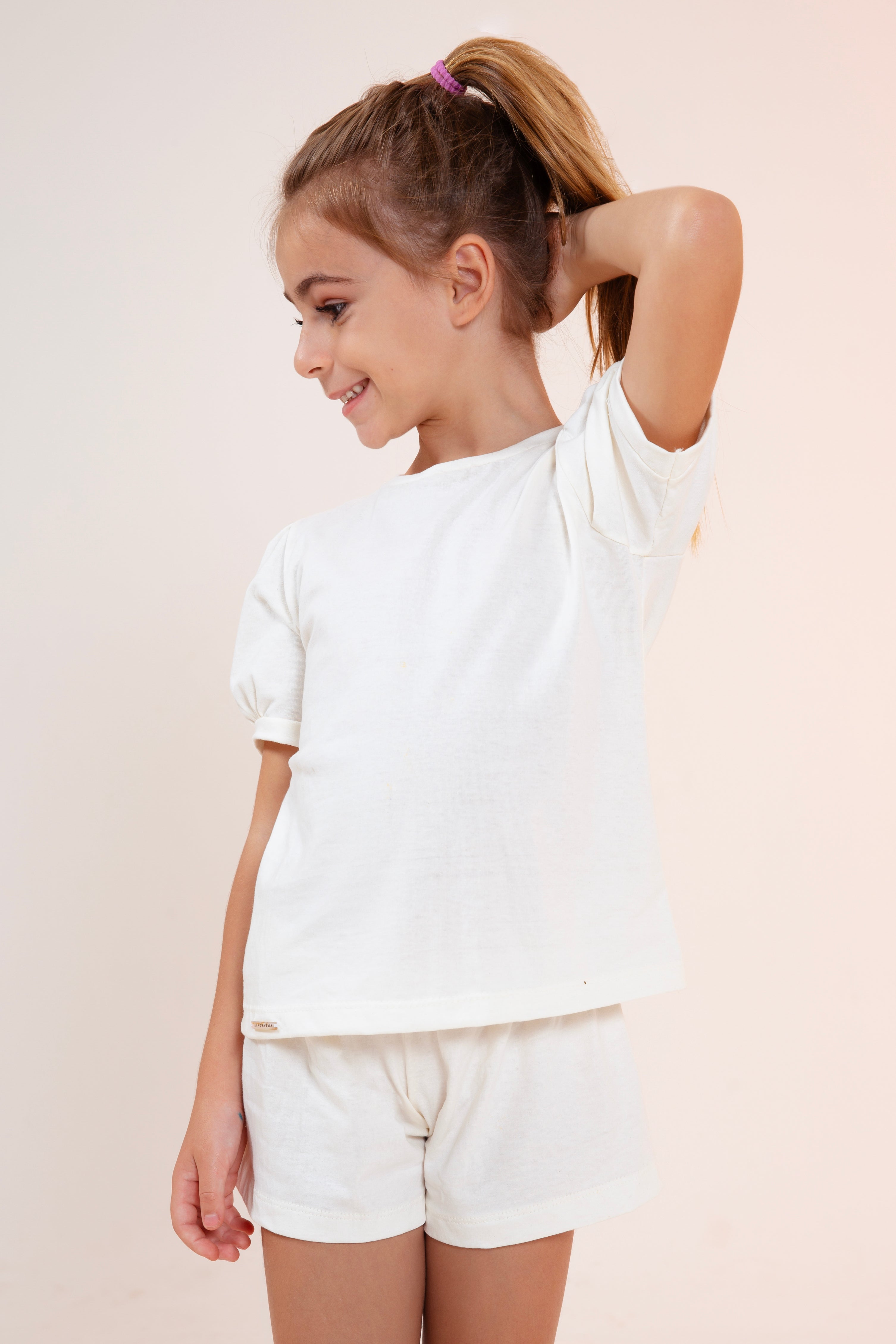 Camiseta Infantil Mangas Bufantes Malha de Algodão Orgânico Pintado à Mão MANGARÁ