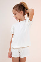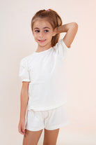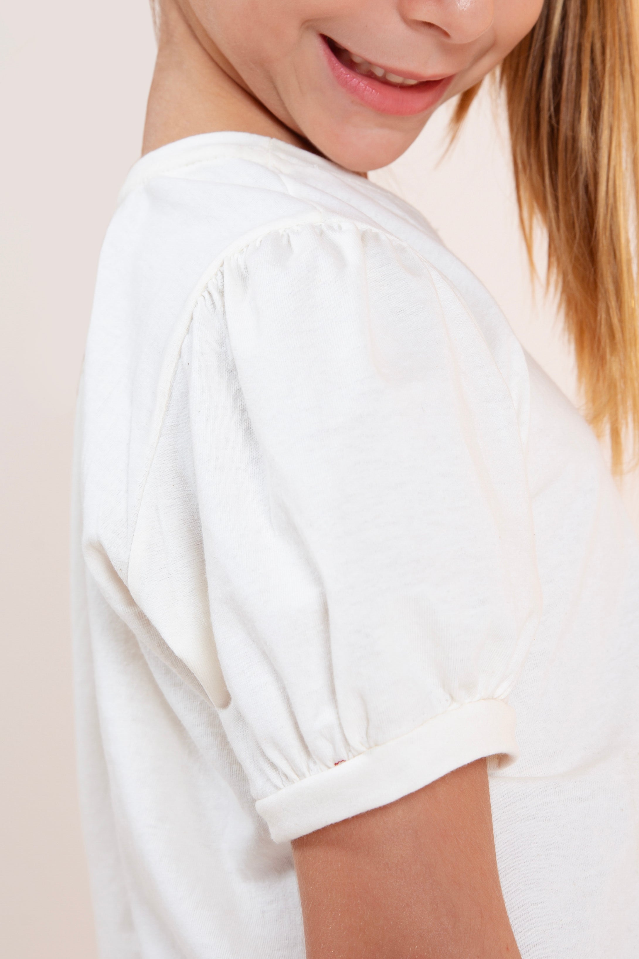 Uma camiseta de mangas bufantes Manga será perfeita para uma criança que gosta de um visual básico, mas ao mesmo tempo arrumadinho, já que suas mangas levemente estruturadas ficam encantadas à peça.