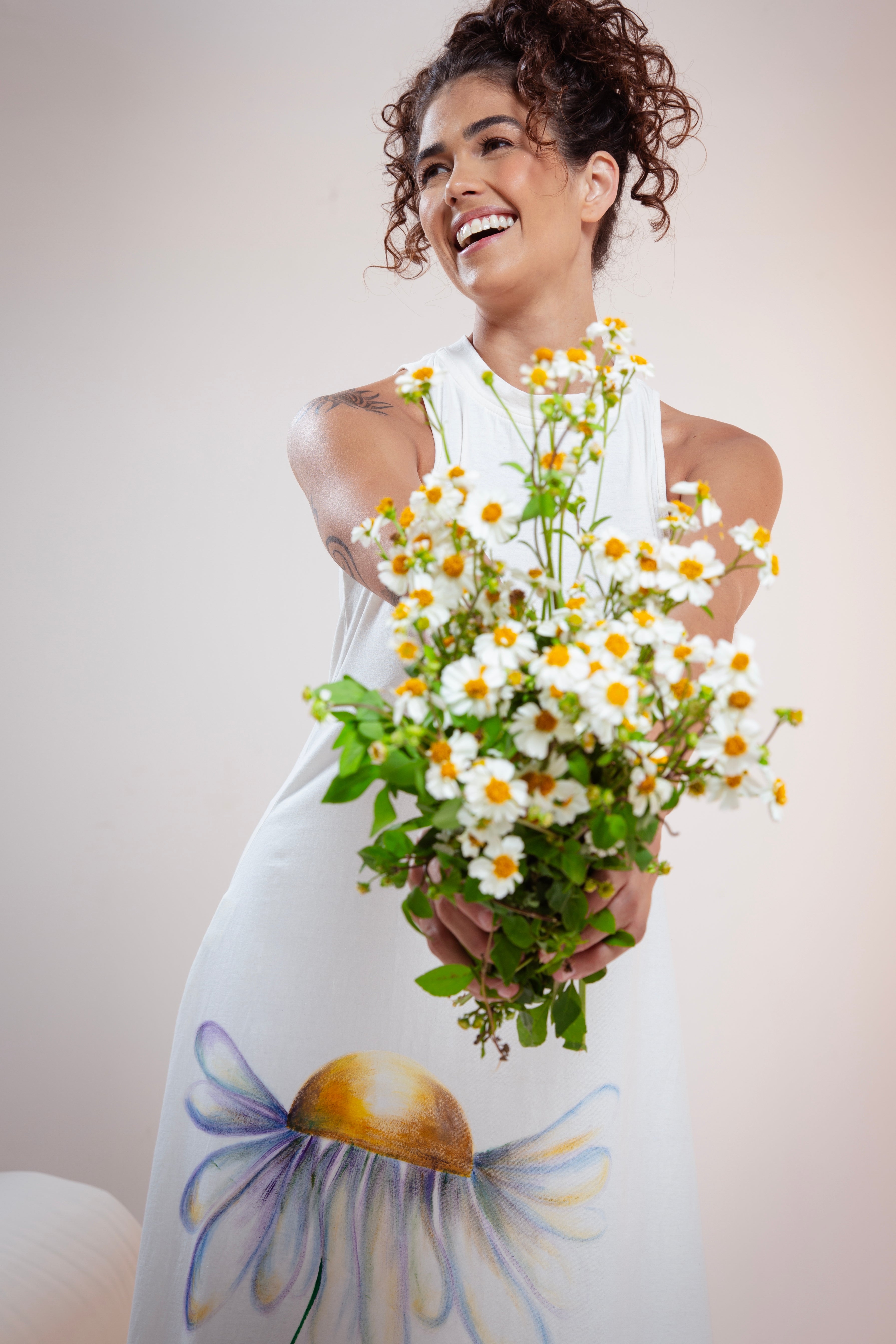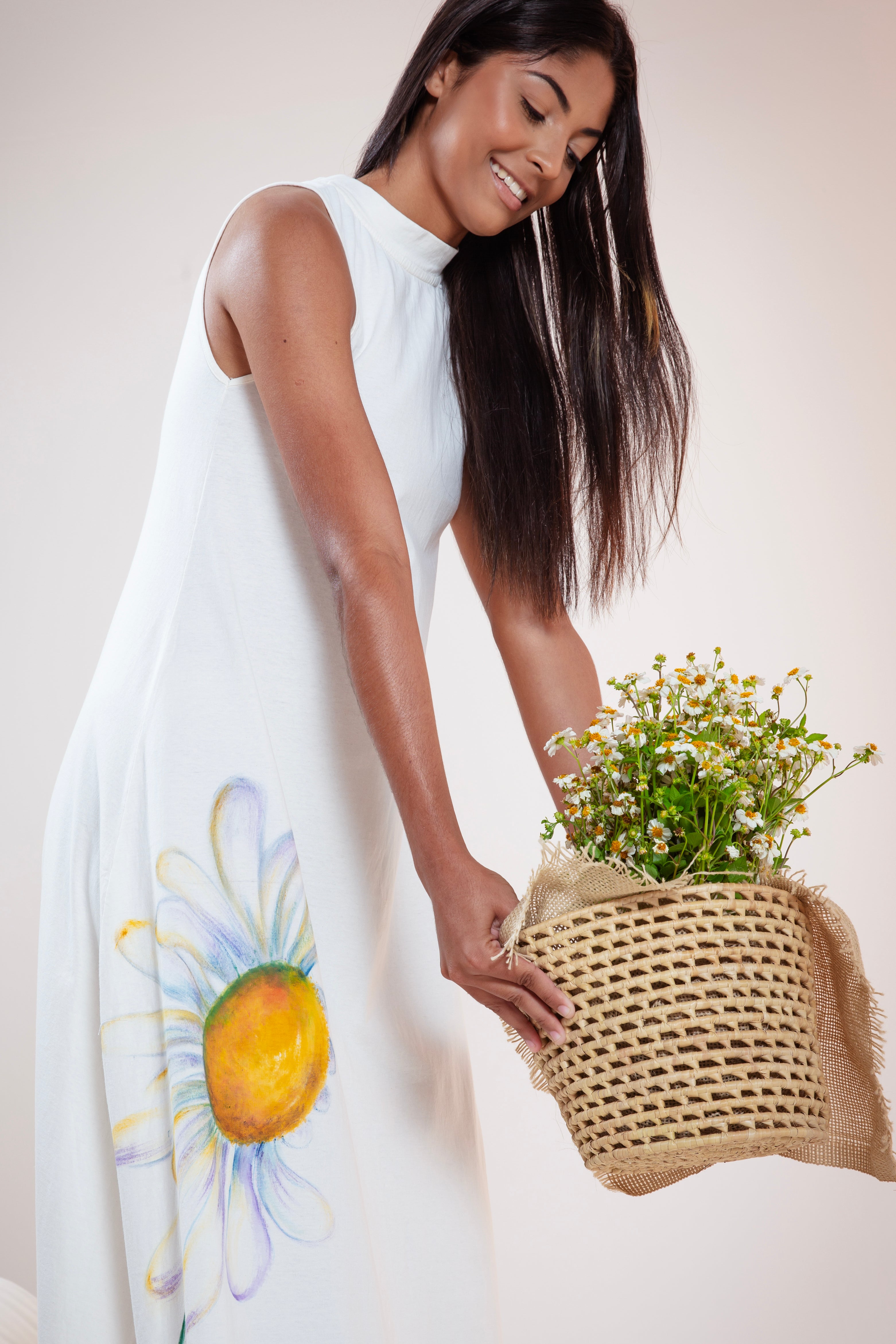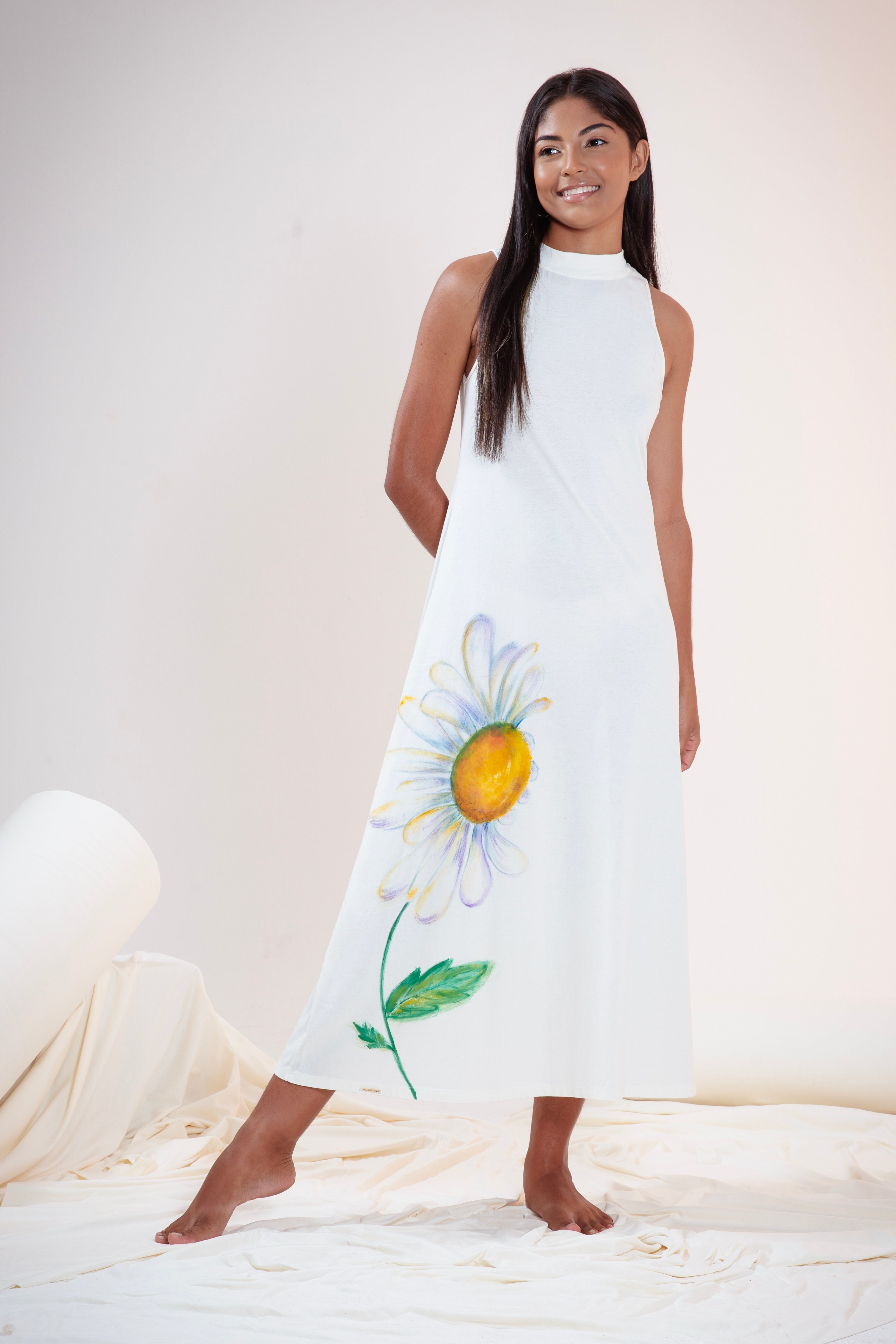 Vestido Longo Cava Americana em Malha de Algodão Orgânico Capulho Camomila
