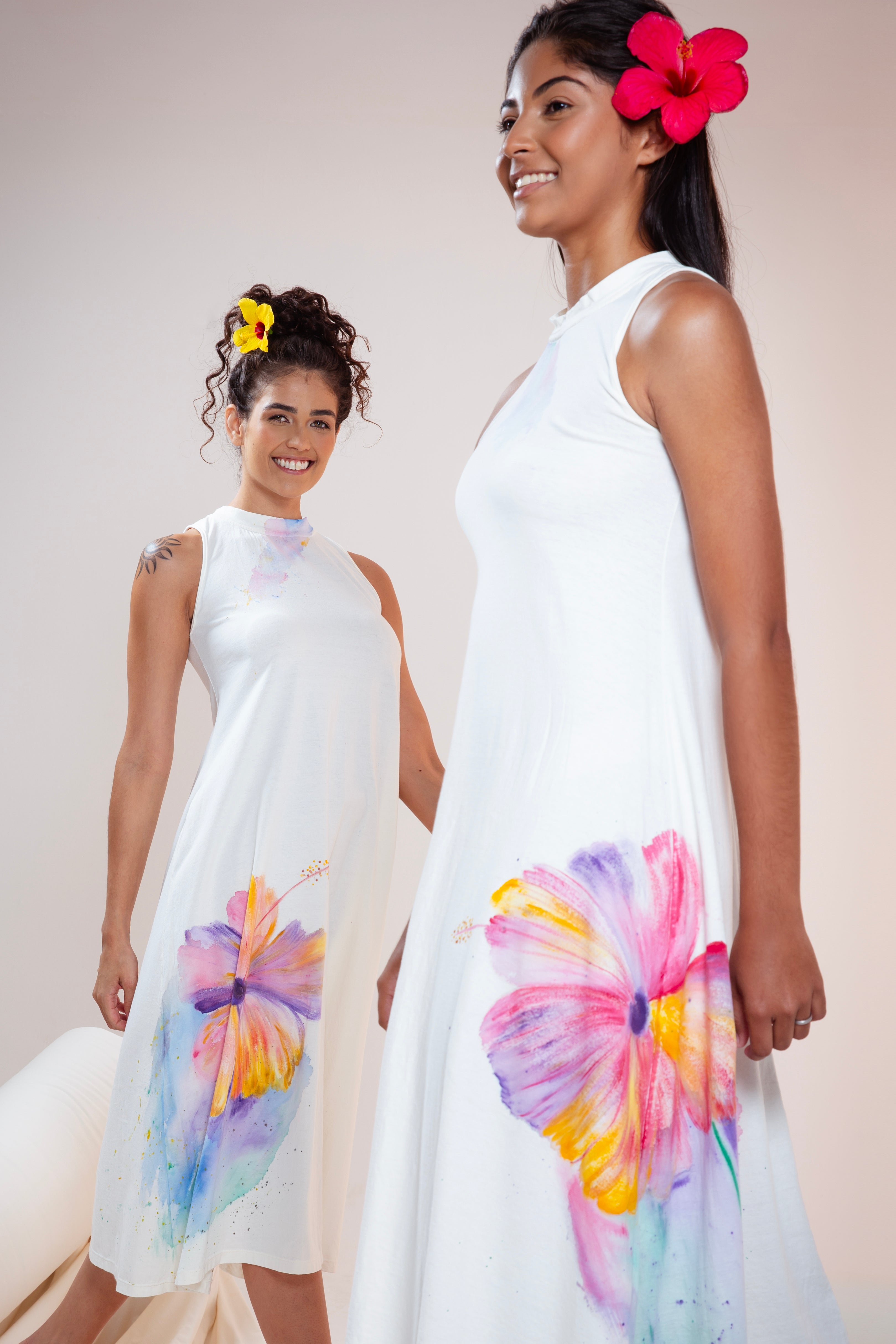 Vestido Longo Cava Americana em Malha de Algodão Orgânico Capulho Hibisco