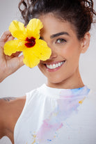 Na versão Hibisco, a inspiração vem da força virtuosa da flor que é símbolo de beleza e paixão. Relacionada ao planeta vênus e ao elemento água, as propriedades mágicas da flor do Hibisco sugerem que abracemos o nosso lado feminino, sensível, clarividente e ao mesmo tempo potente, intenso, ávido, virtuoso, sedutor. Nossa releitura é aquarelada… excelente para quem deseja acessar águas internas vestindo-se de amor em ato.