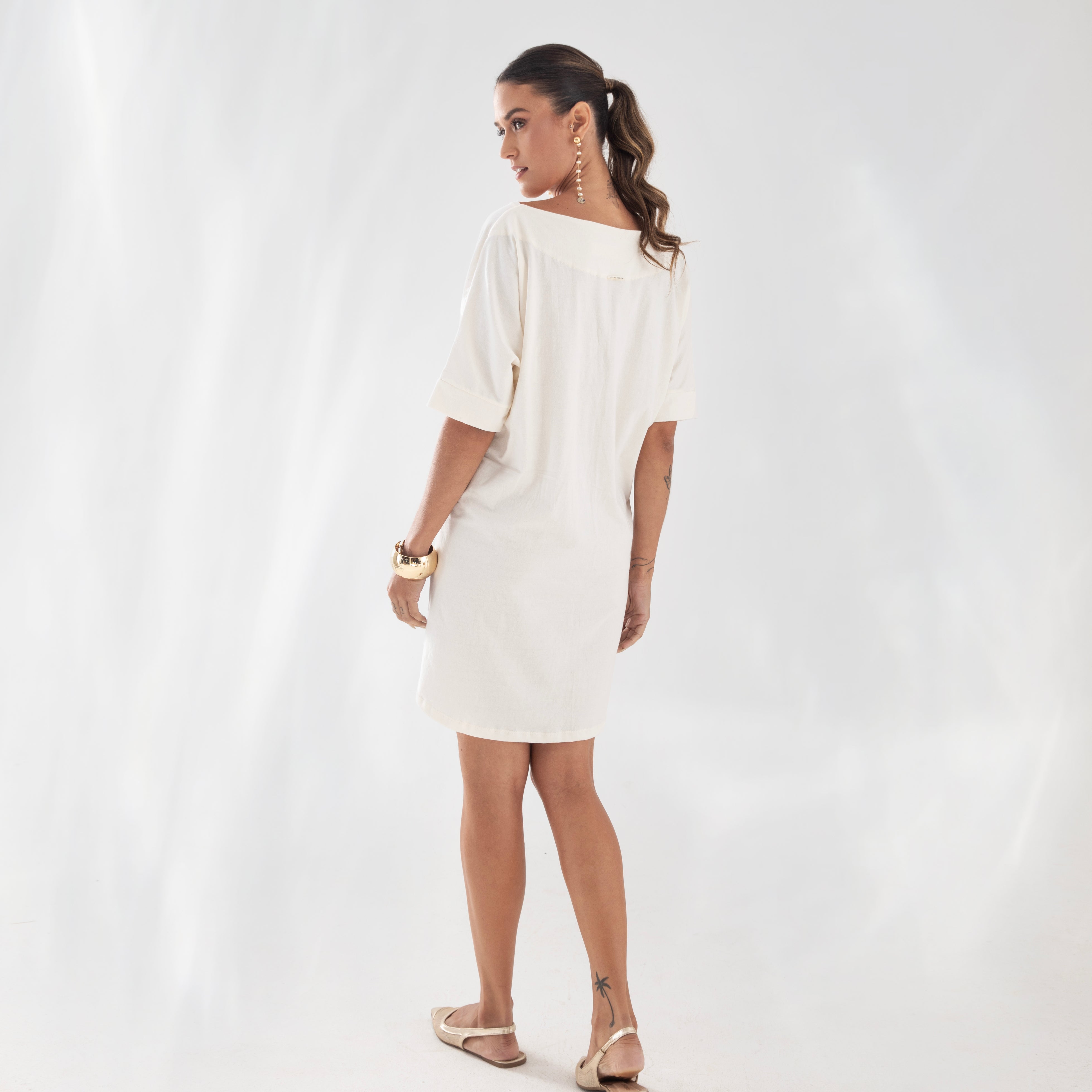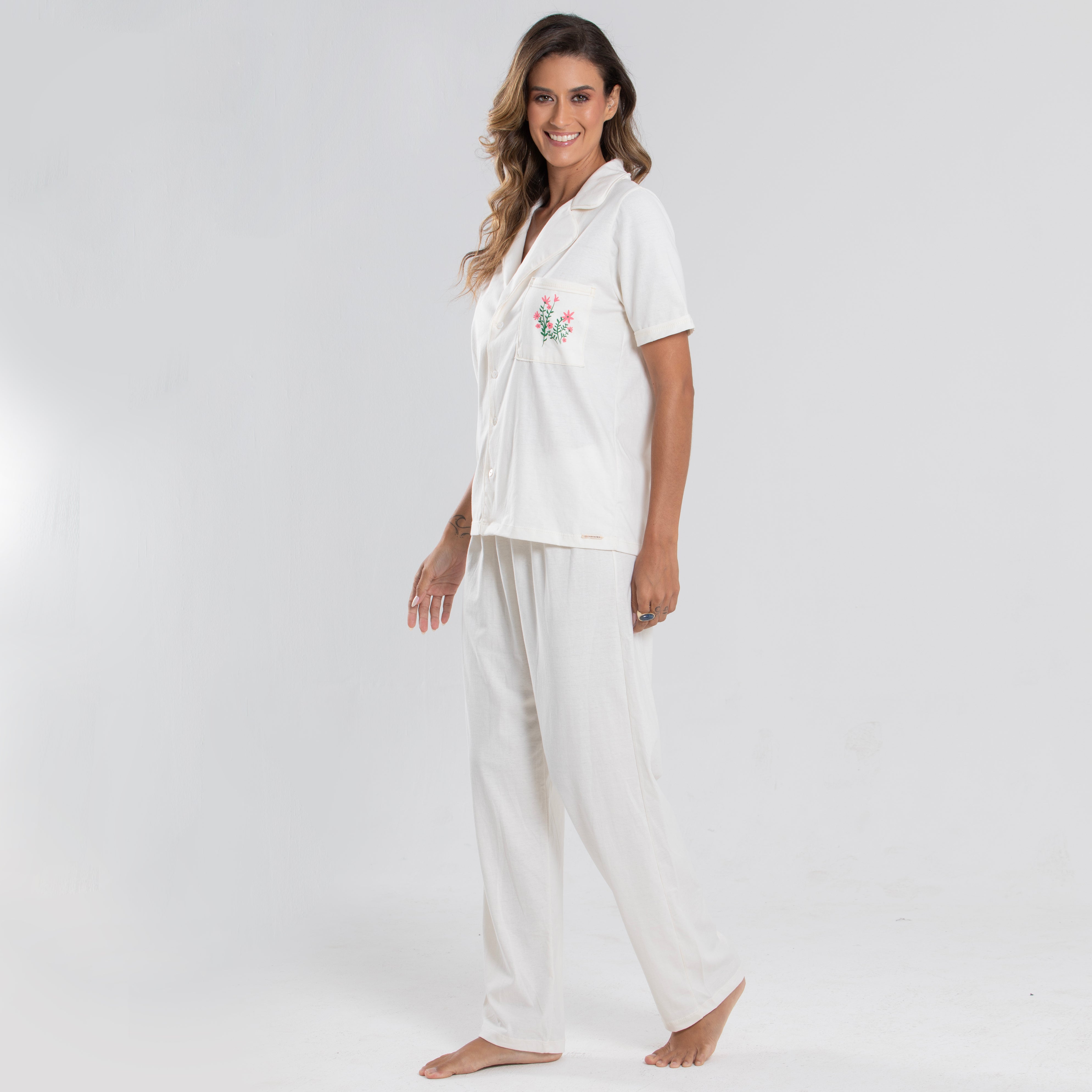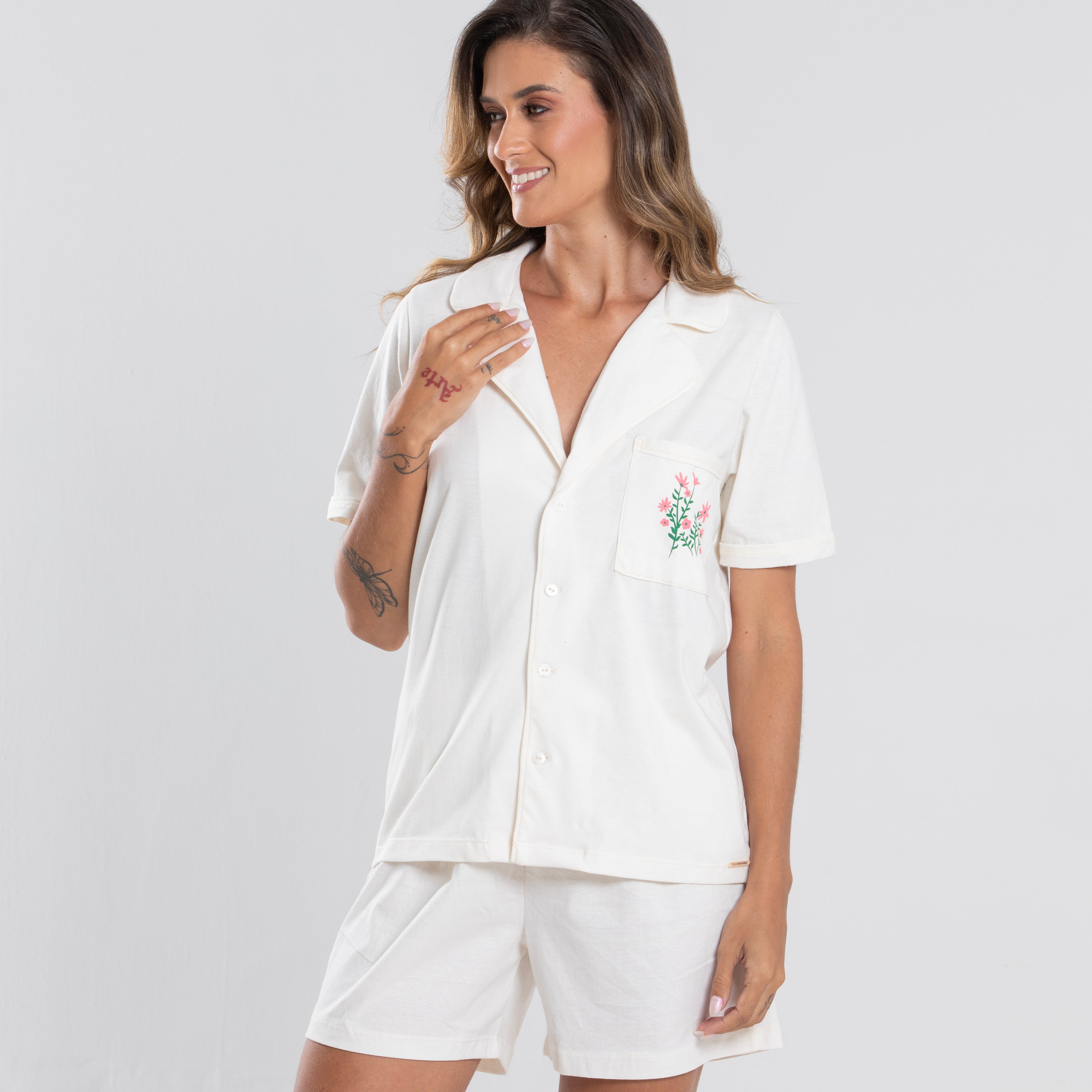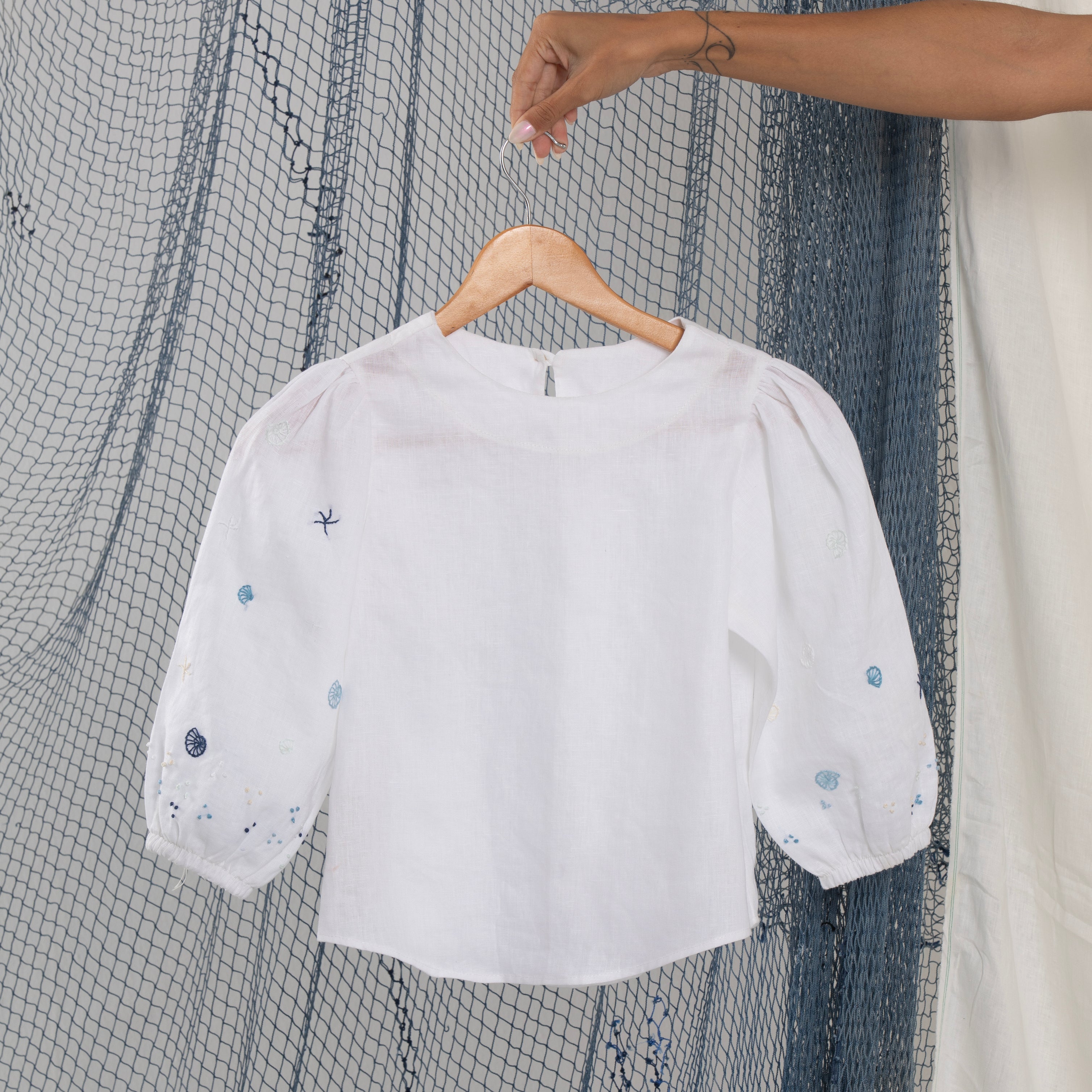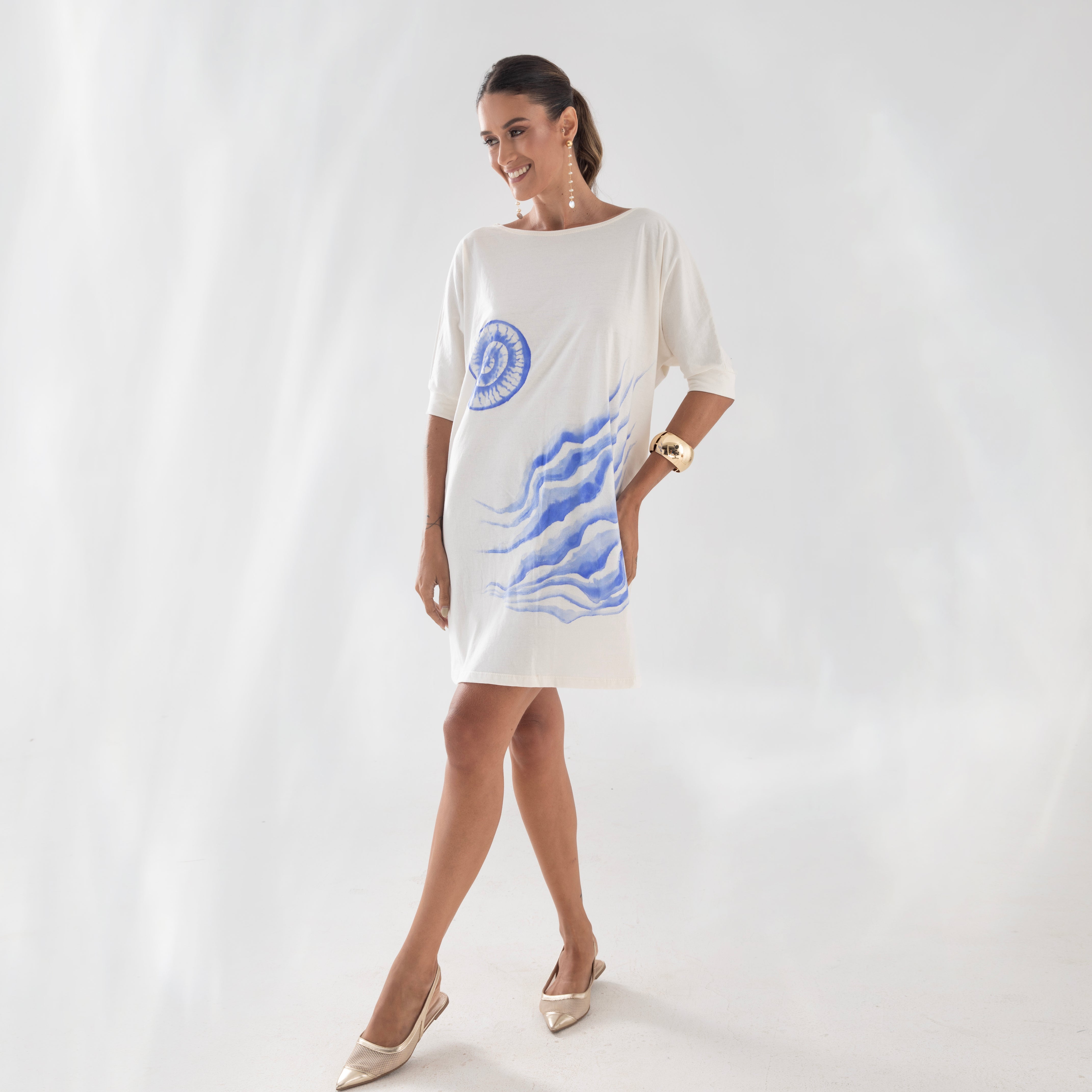 Nossa etiqueta é puro algodão e recebe tintas a base d’água; já nossas plaquetas são de madrepérola, uma concha que pode ser do mar ou do rio, trazendo sofisticação natural à peça.