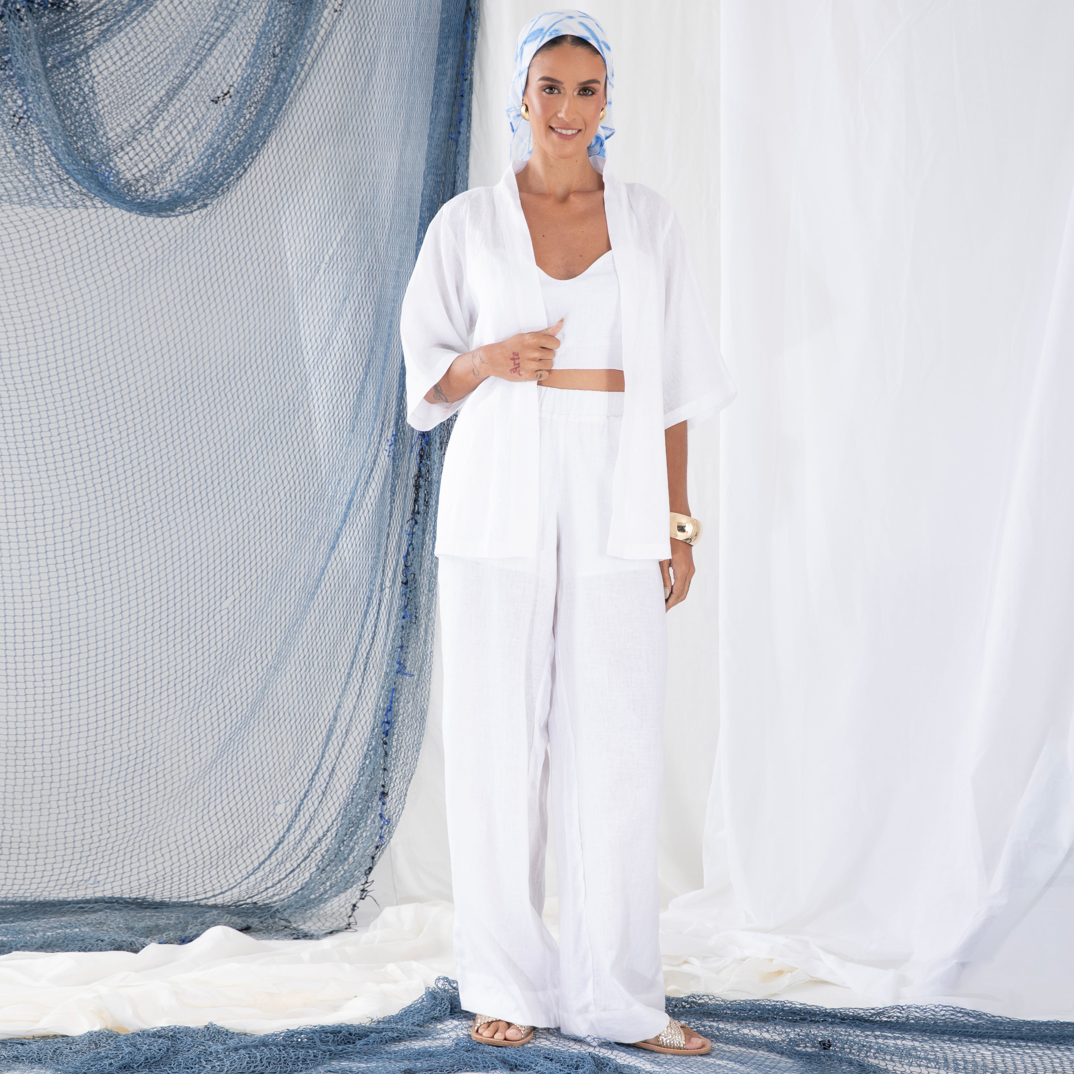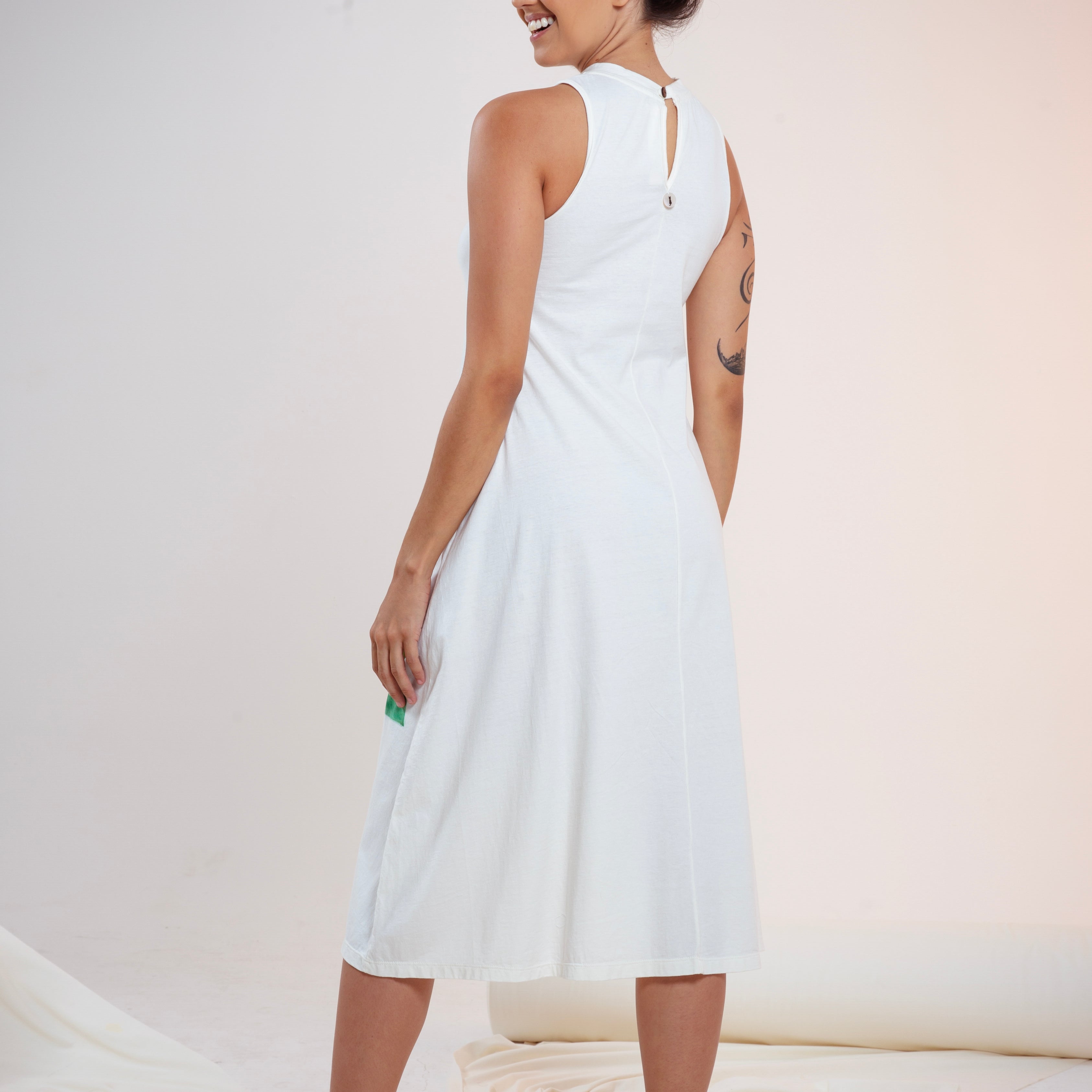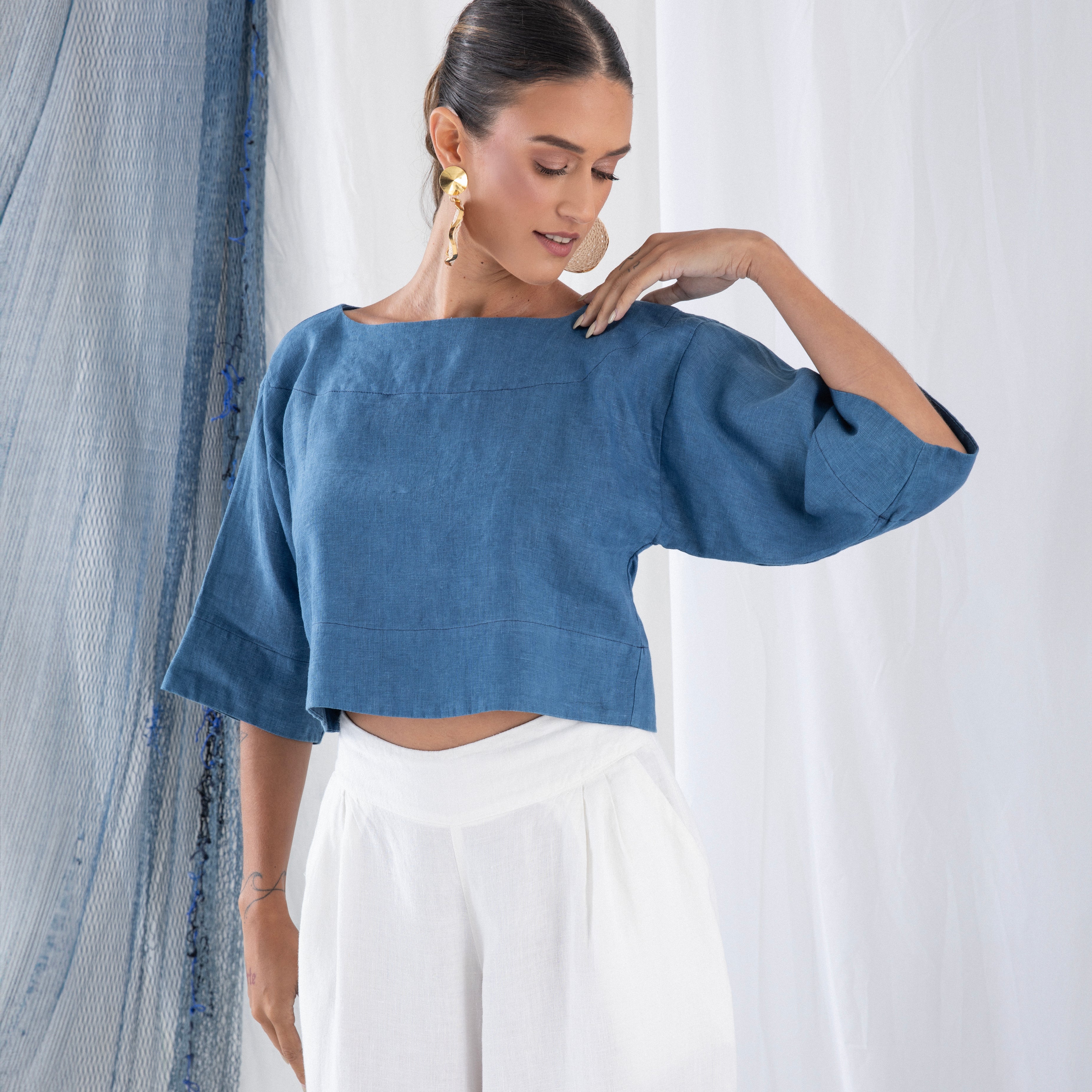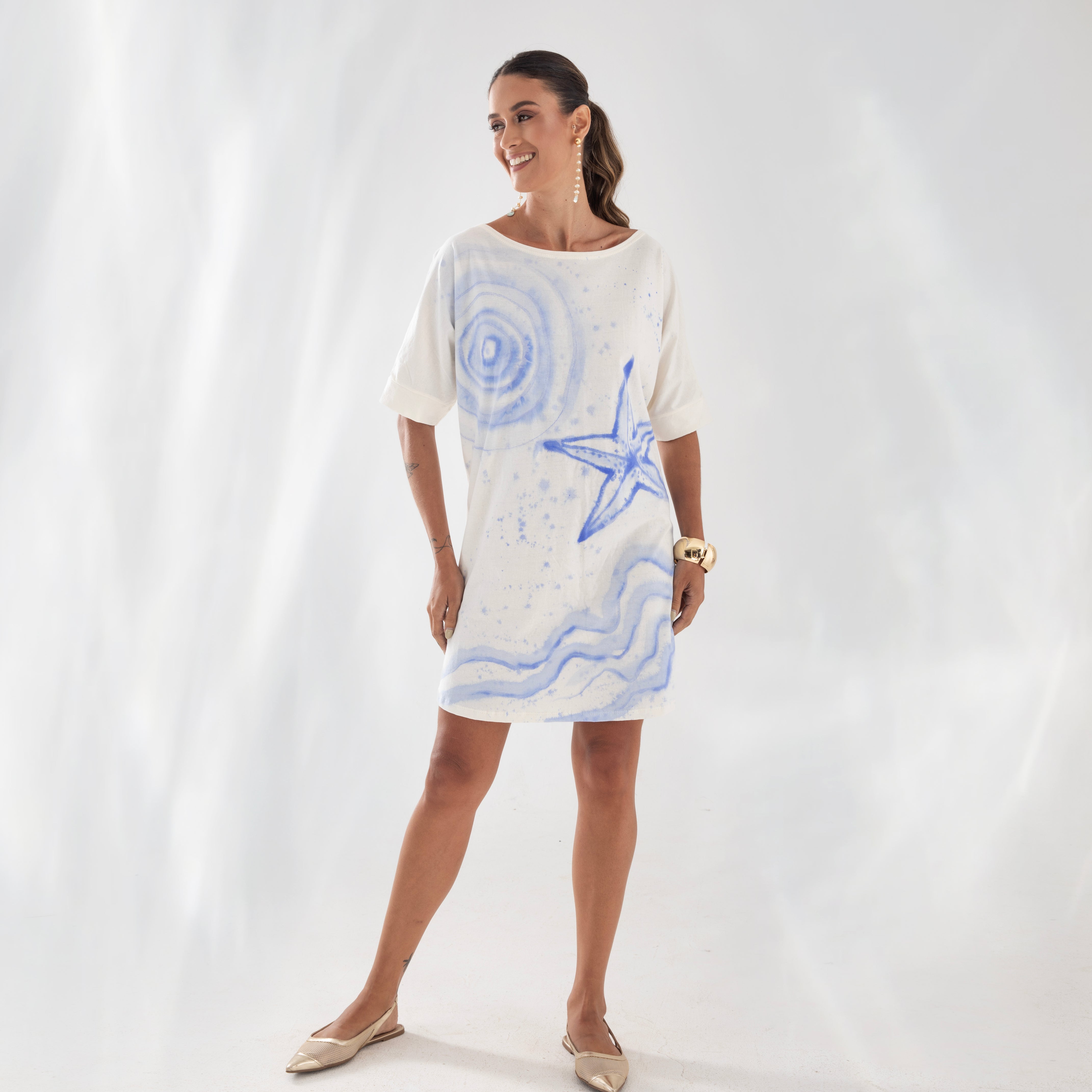 Nossa etiqueta é puro algodão e recebe tintas a base d’água; já nossas plaquetas são de madrepérola, uma concha que pode ser do mar ou do rio, trazendo sofisticação natural à peça.