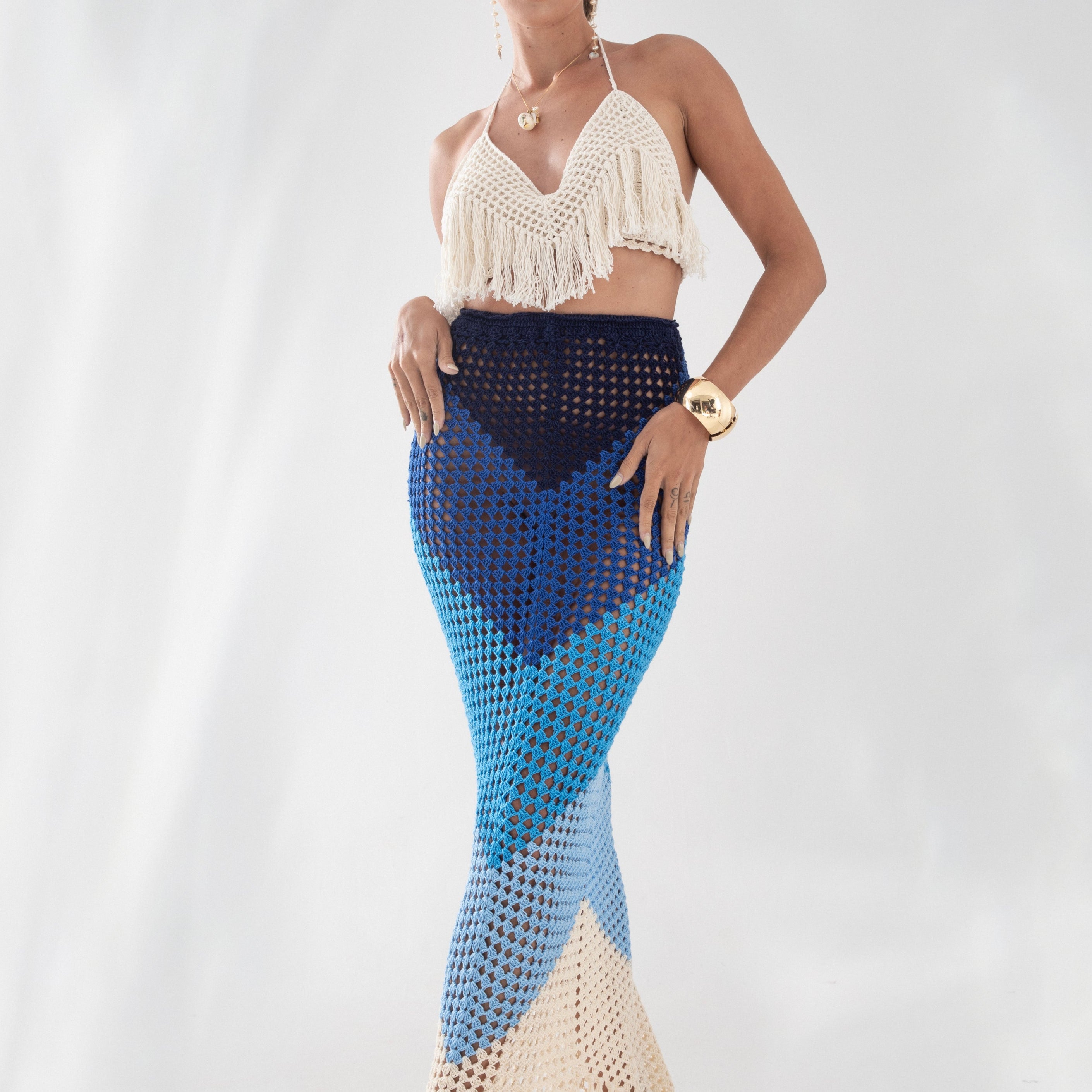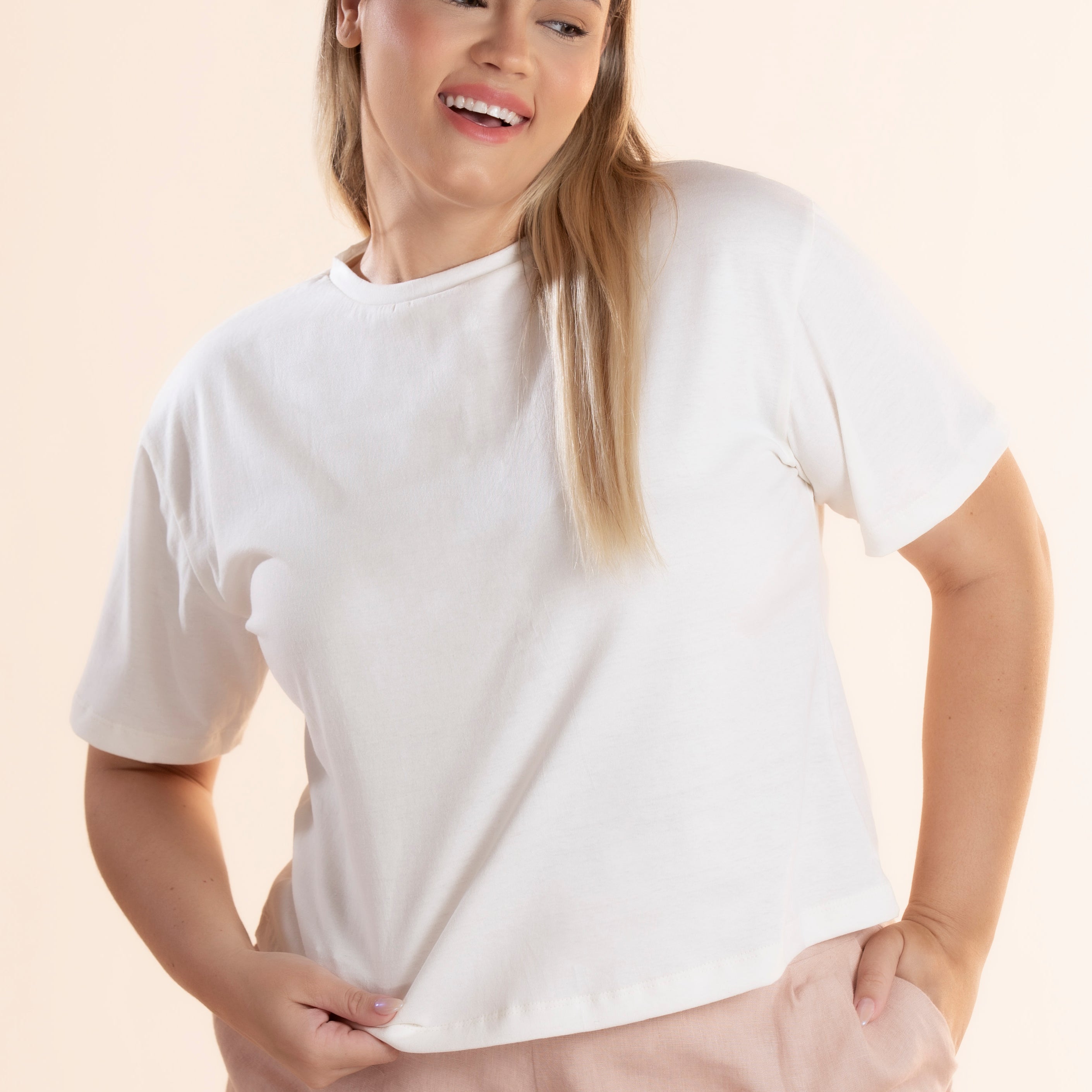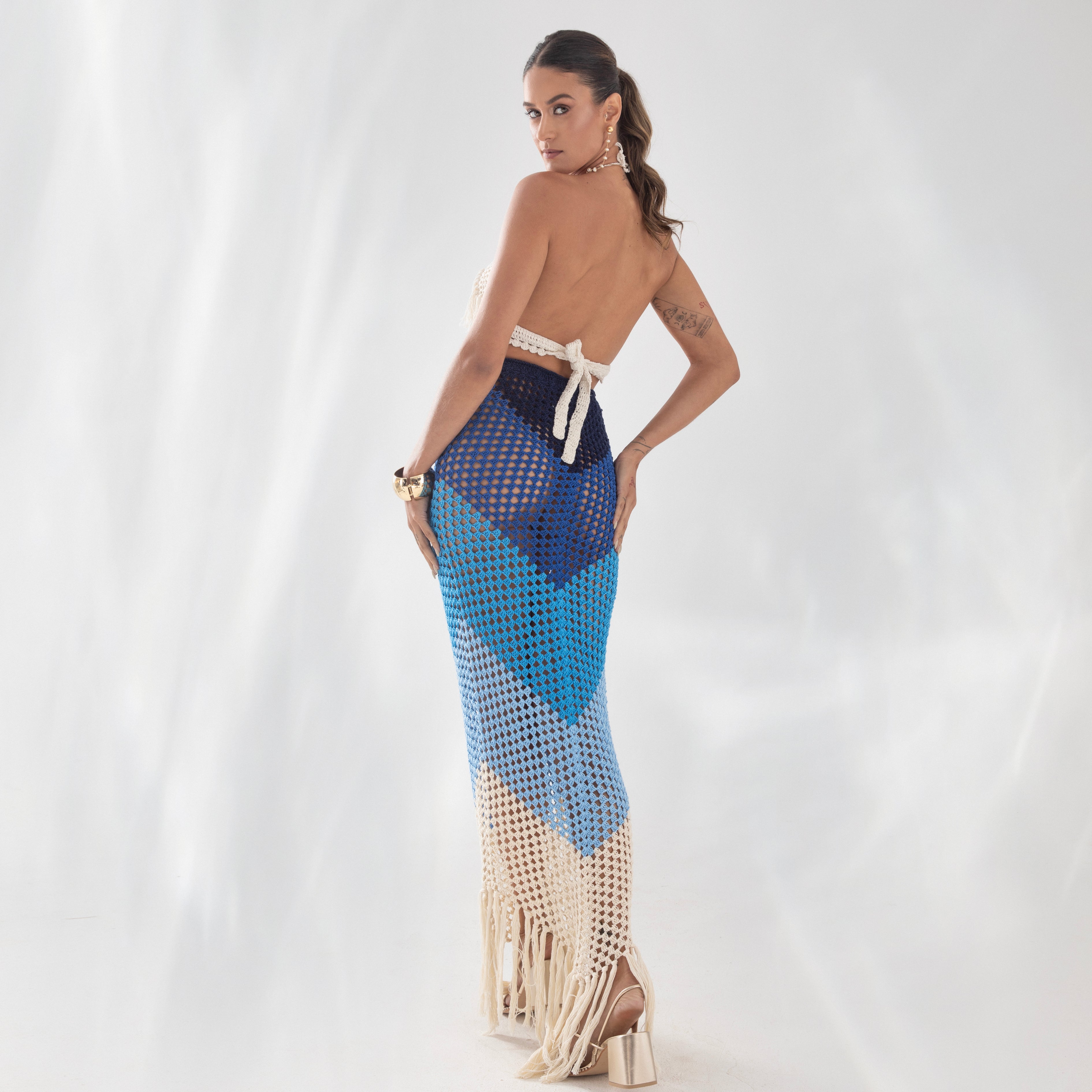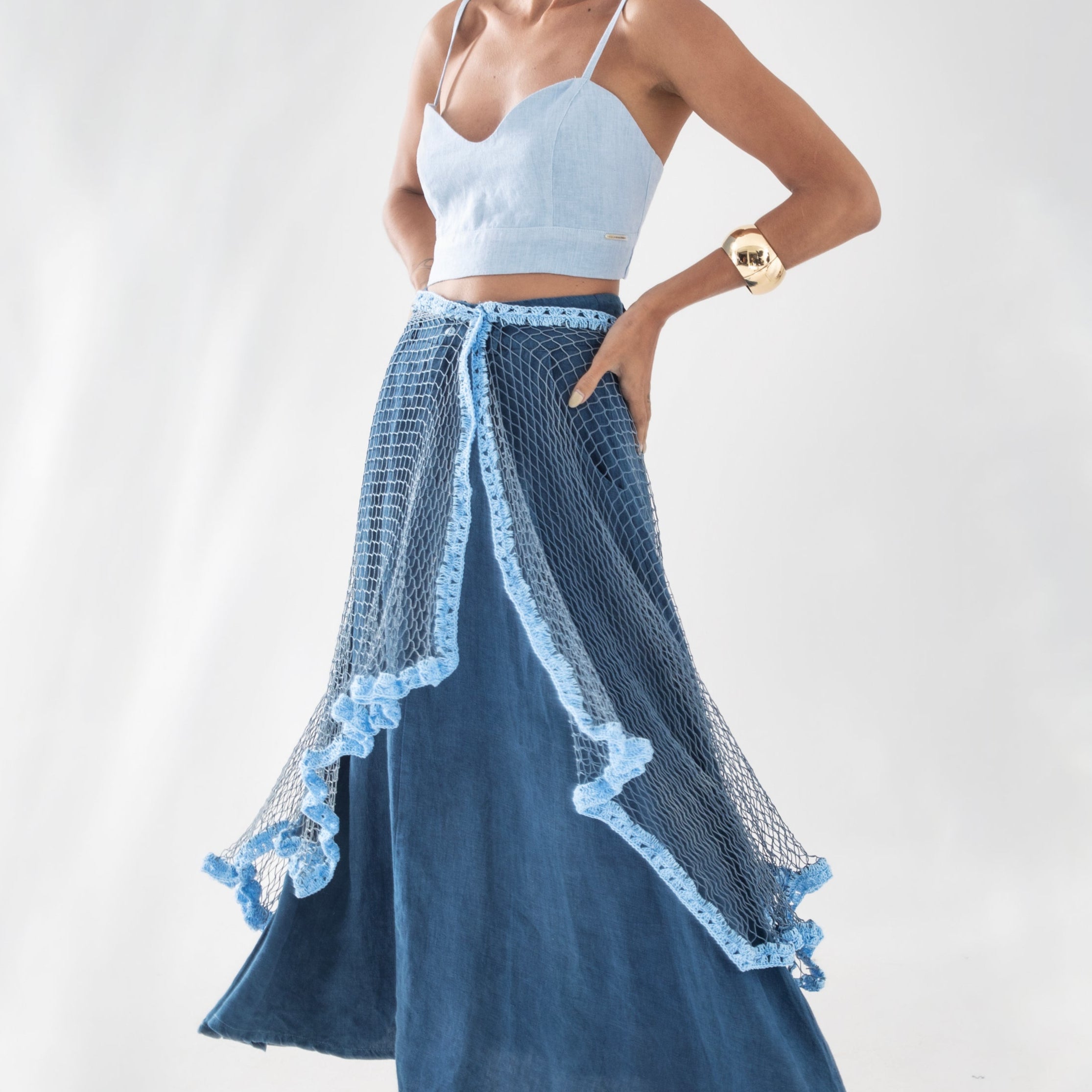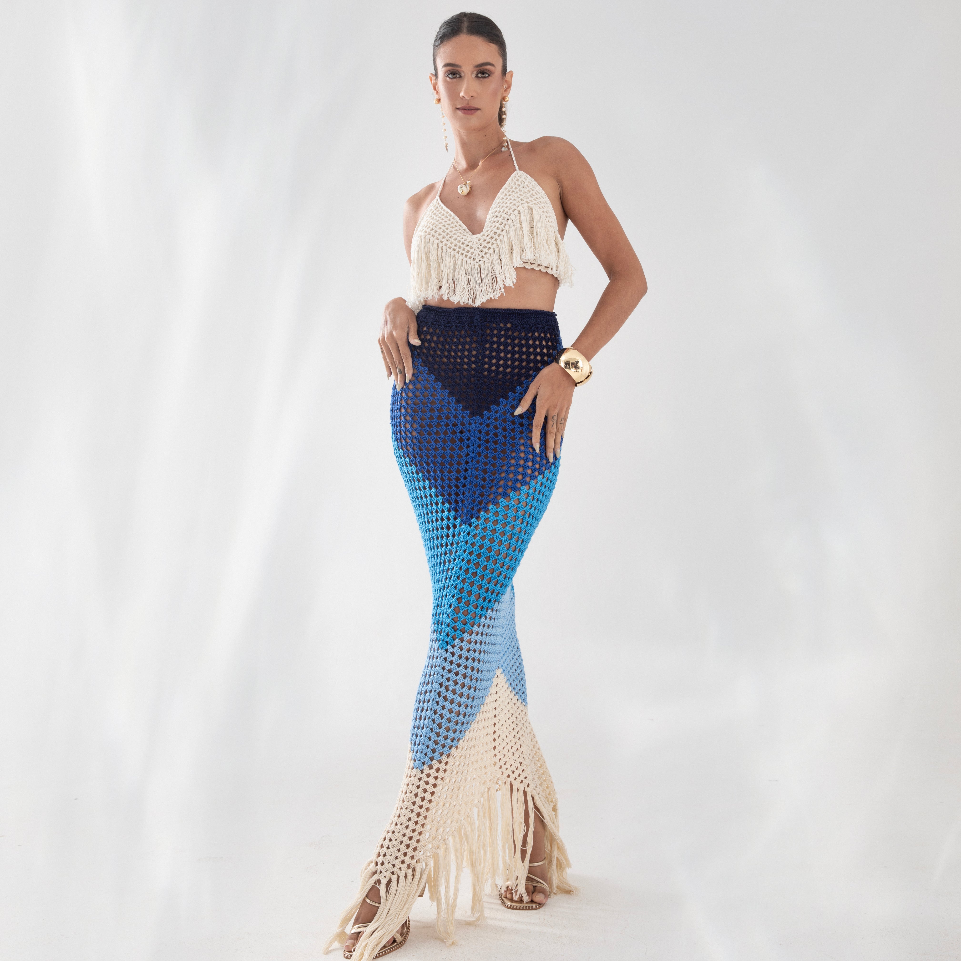 Nossa etiqueta é puro algodão e recebe tintas a base d’água; já nossas plaquetas são de madrepérola, uma concha que pode ser do mar ou do rio, trazendo sofisticação natural à peça.
