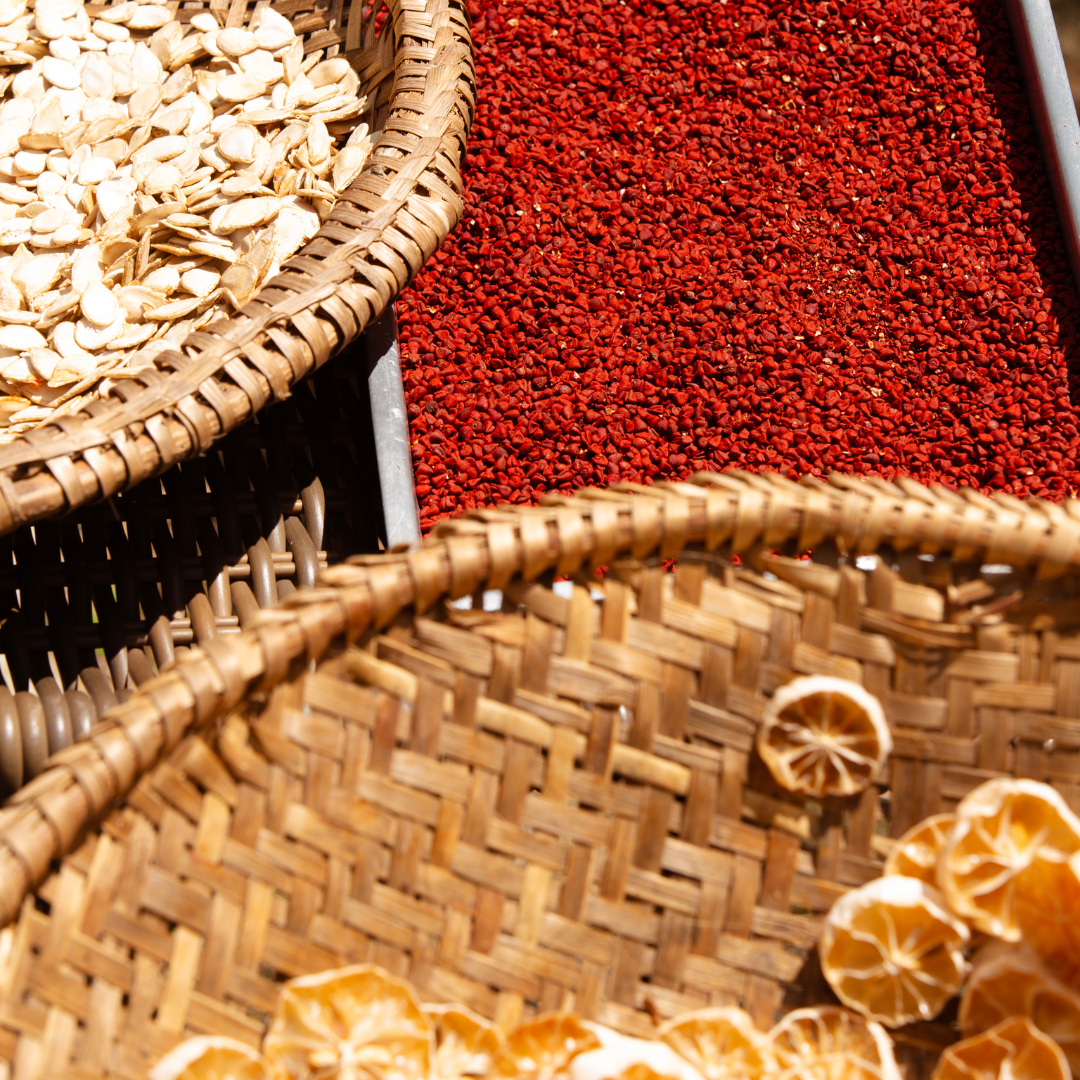 Pink tones express love, affection and closeness. Ours come from the powerful Crajirú, also known as Pariri, an anti-carcinogenic medicinal plant that heals from the inside out and from the outside in.